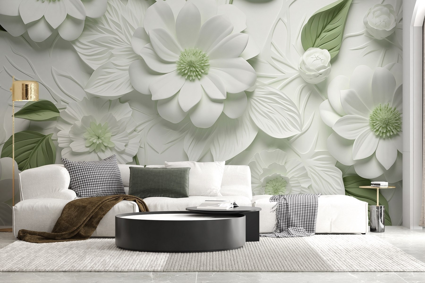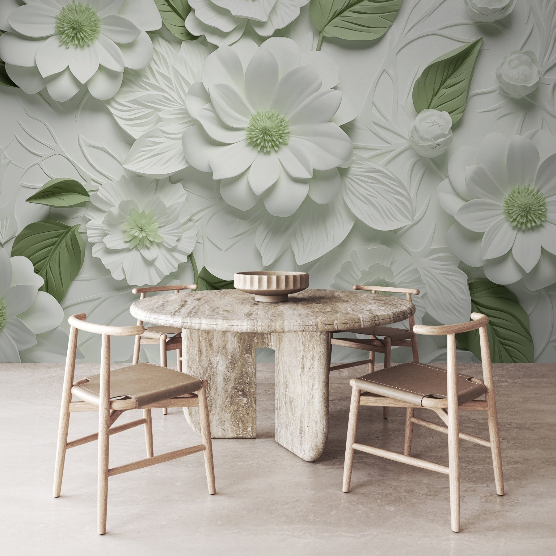 Tover elke kamer om in een serene oase met deze prachtige muurschildering met delicate witte en groene bloemen. Het is alsof je een tuin naar binnen haalt, zonder de vervelende insecten. Stel je voor dat je koffie drinkt in een zonovergoten hoekje, omringd door bloemen die nooit verwelken. De ingewikkelde ontwerpen mixen elegantie met een vleugje eigenzinnigheid, waardoor elke blik voelt als een mini-ontsnapping. Perfect voor die lege muur die om een beetje liefde fluistert of zelfs als accent om de boel wat op te fleuren. De schoonheid van de natuur in huis en geen groene vingers nodig – wie zou dat niet willen?