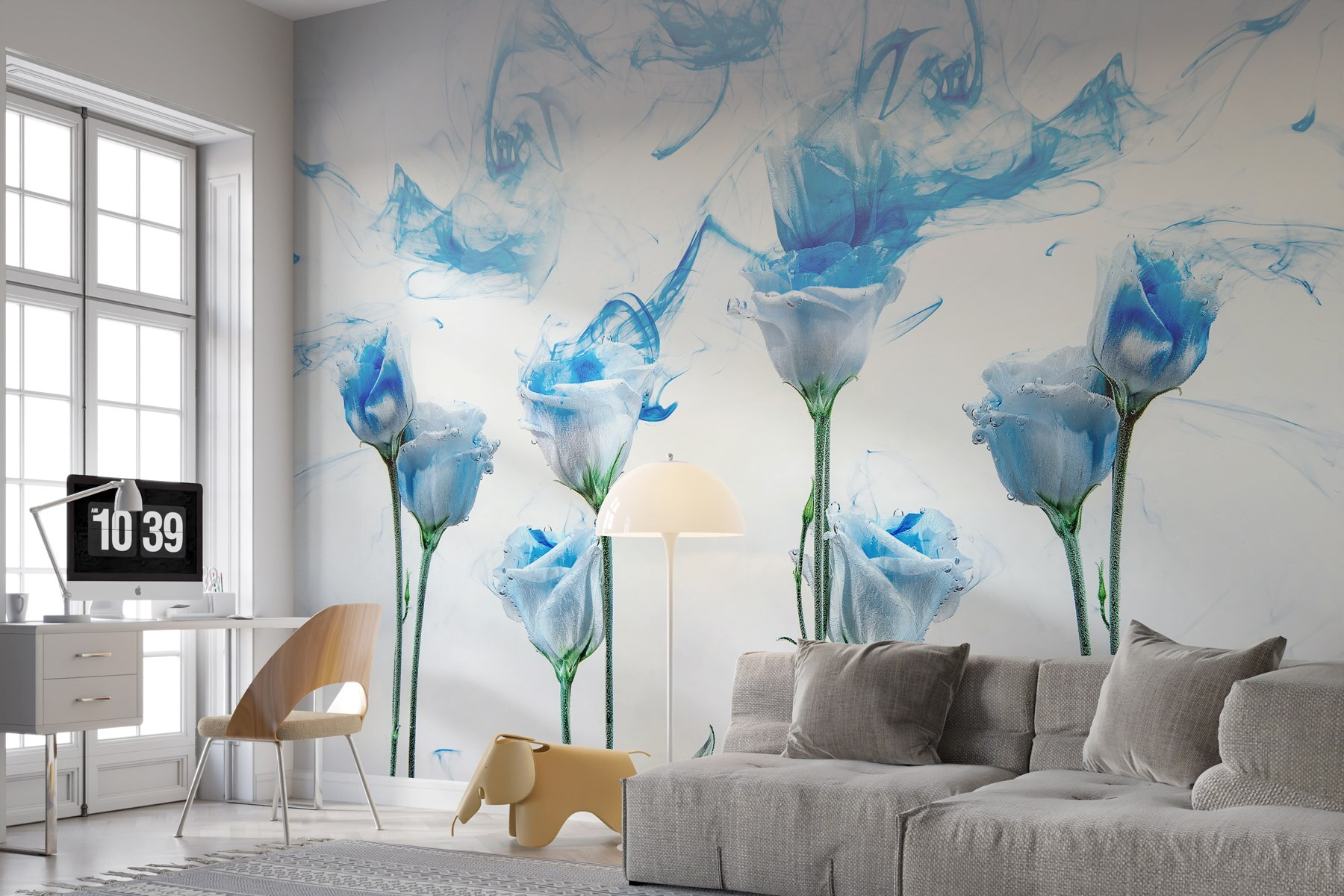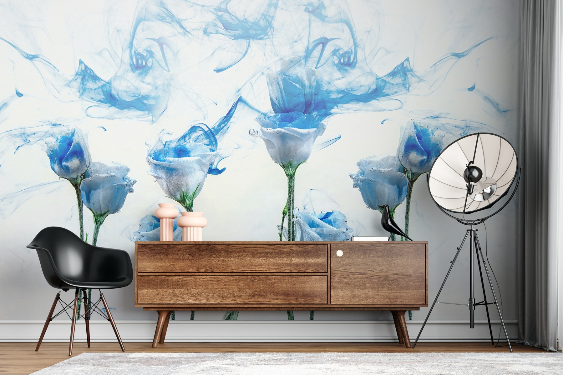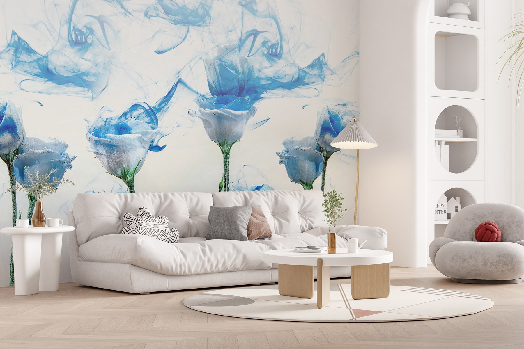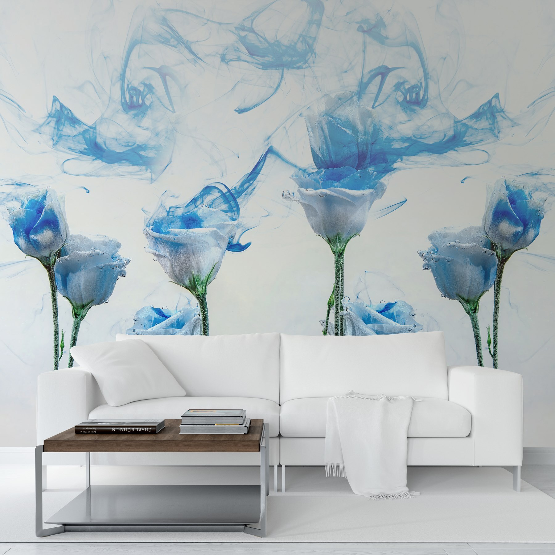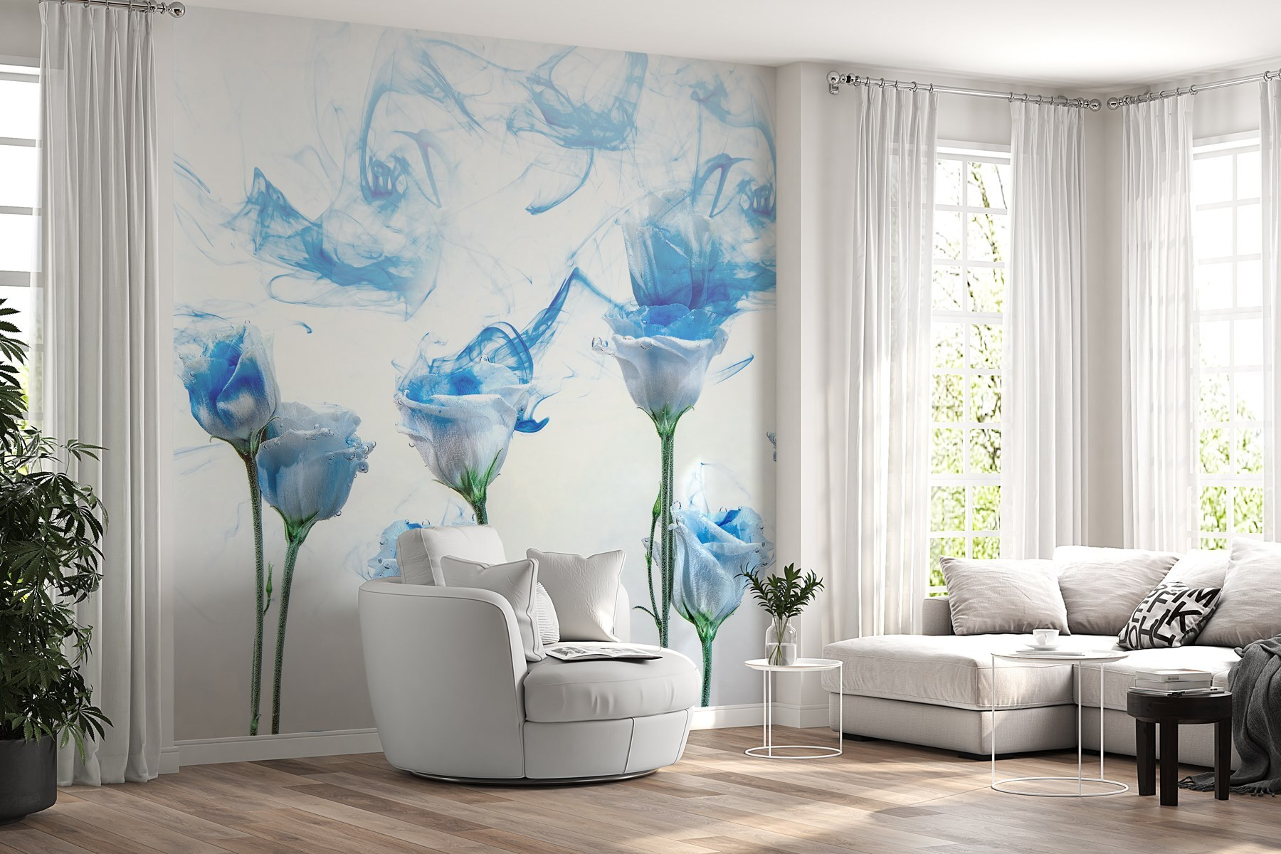 Transformeer je ruimte met deze prachtige muurschildering met een dromerige groep bloemen, prachtig verweven met blauwe inkt die in het water dwarrelt. Stel je voor dat je een kamer binnenloopt en het gevoel hebt dat je in een rustige tuin bent beland – wie zou dat niet willen? Deze prachtige rozen met hun zachte tinten voegen een vleugje elegantie en eigenzinnigheid toe. Deze muurschildering is perfect om een woonkamer op te fleuren of een serene sfeer te creëren in een slaapkamer. Ze geeft een verfrissende sfeer waardoor iedereen zal vragen: “Waar heb je dat vandaan?” Het is als een frisse wind voor je muren.