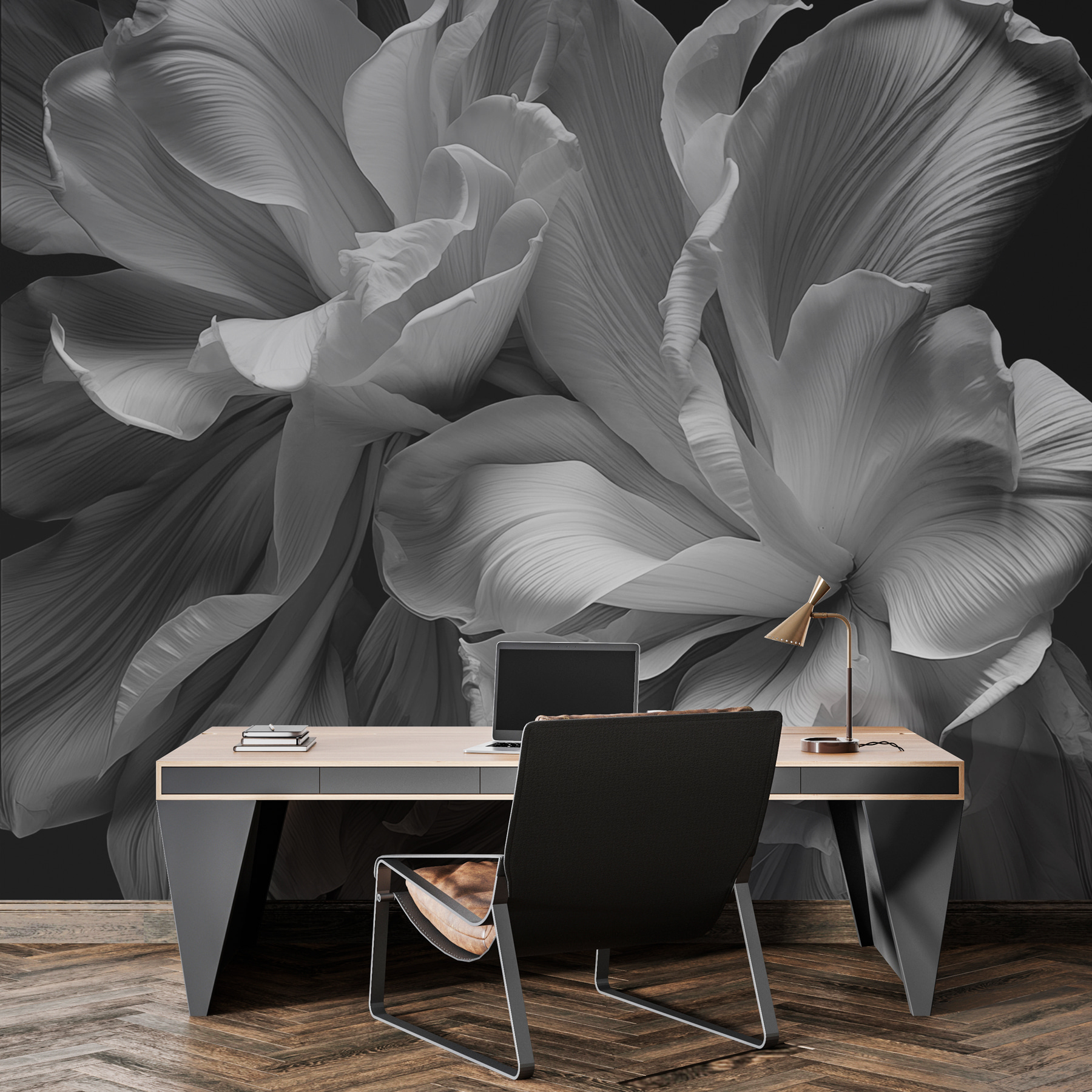 Verander een saaie muur in een adembenemend meesterwerk met “Elegante bloemen in monochroom contrast”. Deze prachtige muurschildering met delicate pioenrozen en rozen in betoverende grijstinten voegt een vleugje verfijning toe aan elke kamer. Stel je voor dat je je kamer binnenloopt en begroet wordt door grillige bloemblaadjes die lijken te dansen op de muur – is dat niet dromerig? Het contrast is perfect om een opvallend statement te maken zonder de zintuigen te overweldigen. Of het nu een gezellig leeshoekje is of een levendige eethoek, deze muurschildering nodigt uit tot warmte, elegantie en een vleugje bloemenmagie. Het is alsof je een tuin binnenshuis hebt, zonder de gieter!
