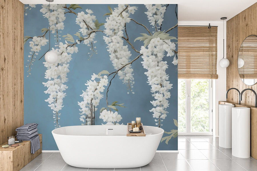Verander een eenvoudige muur in een serene ontsnapping met deze prachtige muurschildering met witte bloemen die sierlijk op een zachte blauwe achtergrond cascaderen. Het is alsof je een beetje natuur in huis haalt – zonder de vervelende pollen! Stel je voor dat je ‘s ochtends aan je koffie nipt, het zonlicht naar binnen schijnt en je het gevoel hebt dat je onder een bloeiende boom zit. De zachte elegantie van de bloemen voegt een vleugje charme toe, waardoor elke ruimte uitnodigender aanvoelt. Perfect voor woonkamers, slaapkamers of zelfs gezellige leeshoekjes; het fluistert zoete rust. Bovendien is het een geweldige gespreksstarter – wie zou er niet graag praten over zo’n mooi kunstwerk aan de muur?