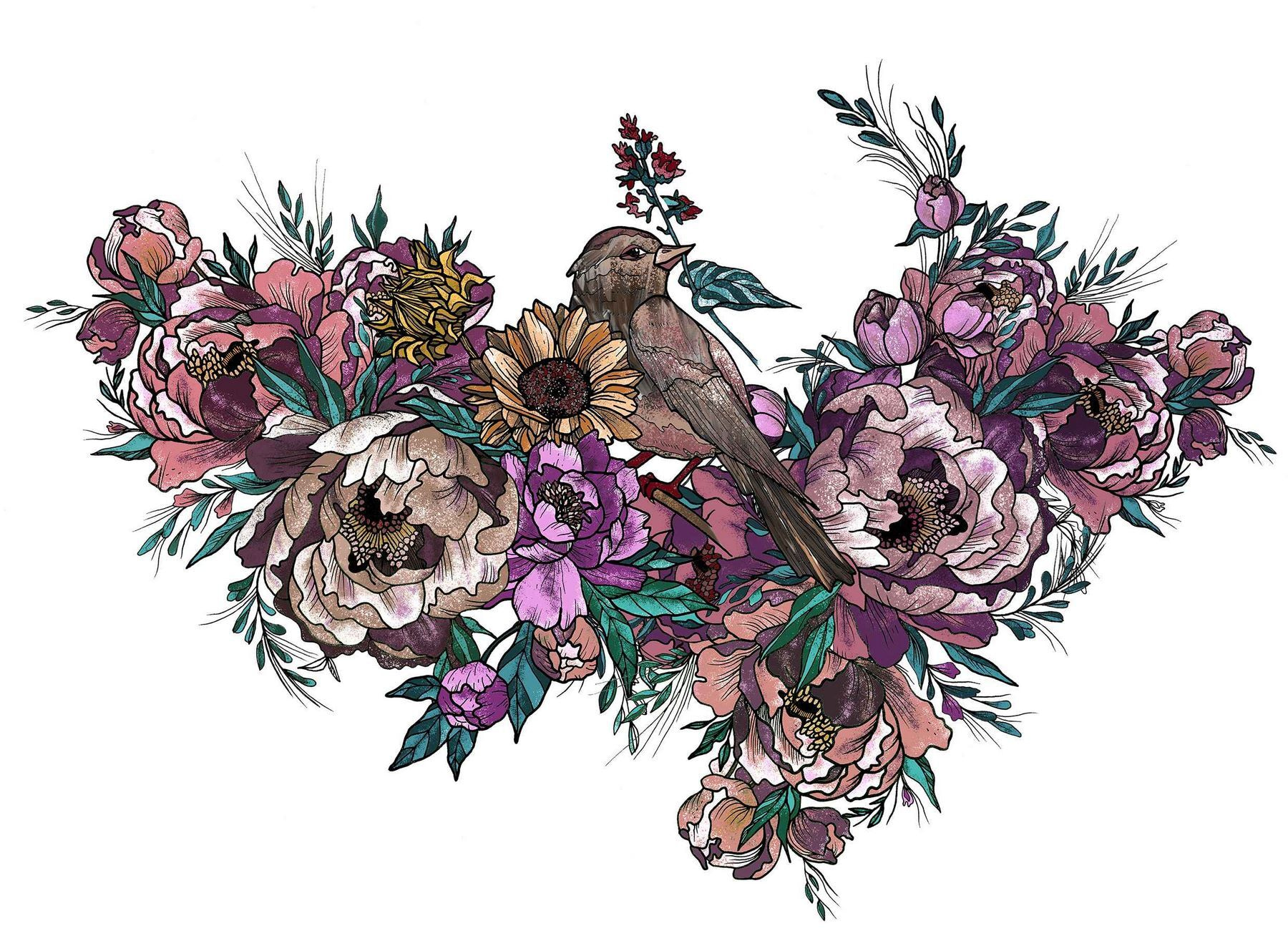 Verander elke muur in een tuin met de muurschildering “Vogel zit op een boeket bloemen”. Stel je voor: een lief klein vogeltje bovenop een levendige explosie van pioenrozen, zonnebloemen en tere blaadjes, allemaal barstensvol persoonlijkheid. Het is alsof de natuur heeft besloten een feestje te bouwen in je woonkamer! Stel je de vreugde voor die het elke ochtend met zich meebrengt. Het licht valt precies op het juiste moment en het voegt een vleugje kleur toe aan je kamer. Vrienden zullen misschien vragen: “Heb je een bloemist ingehuurd?”, maar nee, gewoon artistieke flair aan het werk. Perfect voor een gezellig hoekje of die lastige lege muur, het nodigt uit tot een frisse, speelse sfeer waar het ook terechtkomt. Wie wil er nu niet een dagelijkse dosis bloemengenot?