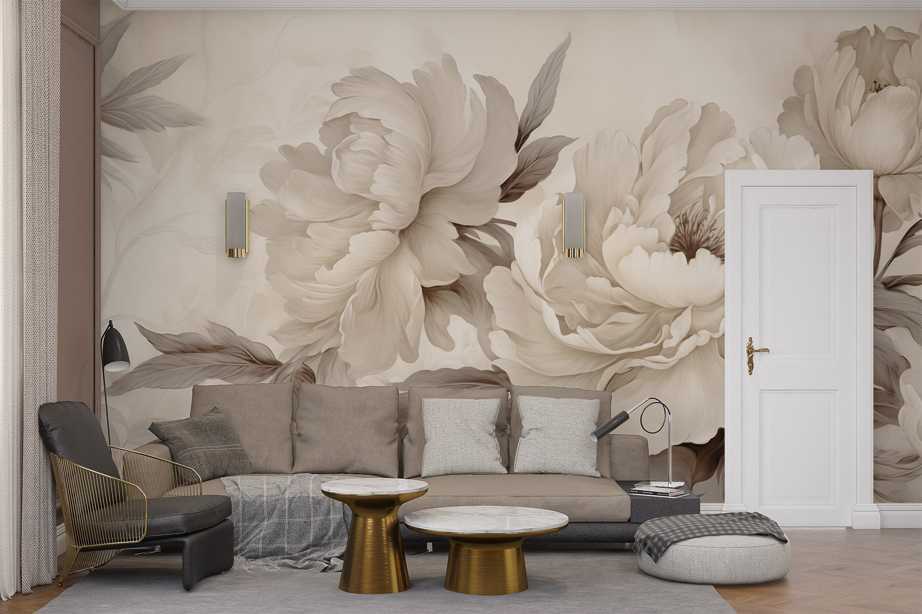 Transformeer je ruimte met “Zachte bloemblaadjes in subtiele tinten”, een muurschildering die elegantie uitstraalt. Stel je voor dat je een kamer binnenloopt waar delicate pioenrozen op de muren bloeien en een serene sfeer creëren. Het gedempte palet brengt een vleugje rust, zoals een zachte omhelzing na een lange dag. Vrienden kunnen commentaar geven op de uitnodigende sfeer en zelfs de kat kan een nieuw zonnig plekje vinden om te luieren. Het is niet alleen decor; het is een sfeermaker die je momenten in zachtheid hult. Deze muurschildering is perfect voor elk hoekje dat wel wat liefde kan gebruiken en geeft het hele jaar door een lentegevoel.