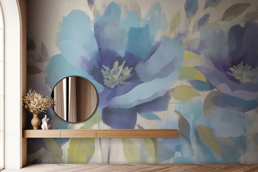 Maak van elke kamer een serene plek met deze prachtige muurschildering van bloemen en bladeren. Stel je voor dat je de ruimte binnenstapt en begroet wordt door grote, zachte bloemen in pastelblauw en paars, als een zachte knuffel van de natuur zelf. Het is perfect voor de dagen dat het leven een beetje te hectisch aanvoelt. Stel je voor: lekker op de bank met een kopje thee in de hand, terwijl de bloemen aan de muur lijken te wiegen – bijna alsof ze dansen. Of het nu een gezellige slaapkamer is of een levendige woonkamer, deze muurschildering voegt moeiteloos een vleugje elegantie en eigenzinnigheid toe. Bovendien hoef je geen water te geven!