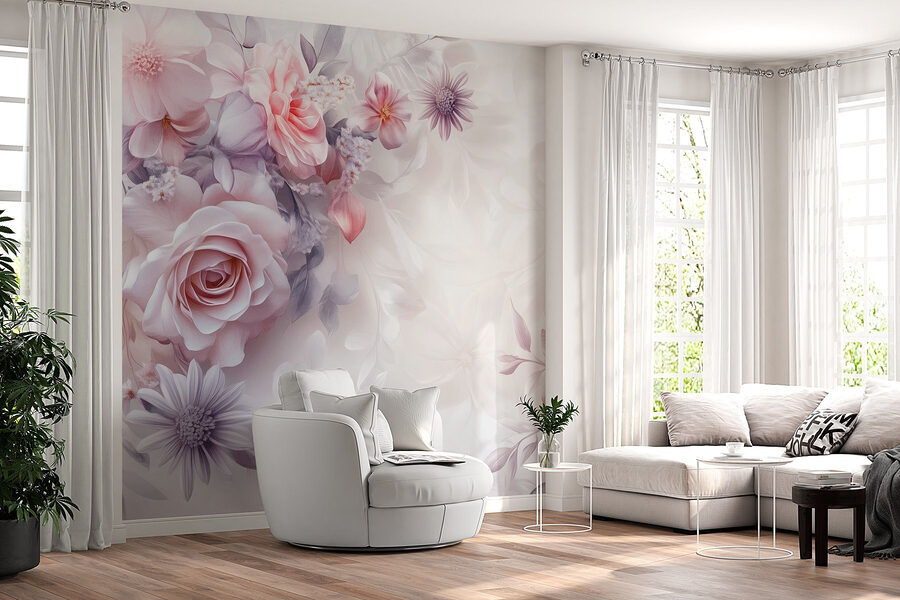Transformeer uw ruimte met ‘Whispers of Nature’s Delicate Beauty’, een prachtige muurschildering die een zacht vleugje bloemige elegantie in uw huis brengt. Stel u voor dat u een serene tuin binnenstapt waar rozen en sierlijke bloesems gracieus samenkomen en elke kamer rust en warmte uitstralen. De zachte pasteltinten vloeien naadloos in elkaar over en creëren een dromerige achtergrond die direct de stemming verbetert. Het is alsof u 24/7 een tuinfeest heeft, maar dan zonder de bijen! Perfect voor gezellige hoekjes of als blikvanger. Bezoekers zullen misschien zelfs denken dat u een geheim heeft om bloemen het hele jaar door vers te houden. Wees gewoon klaar om te glimlachen elke keer dat u erlangs loopt – uw muren zullen u dankbaar zijn!