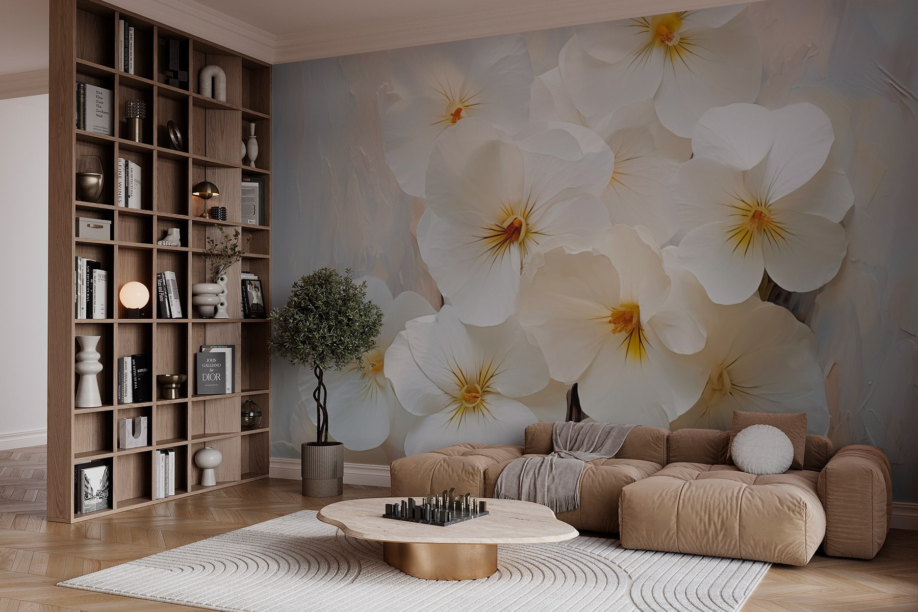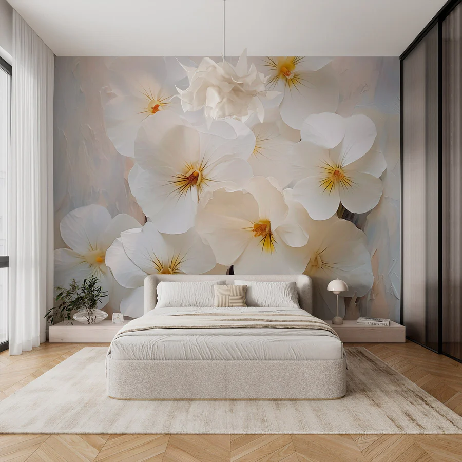 Verander je ruimte in een serene tuin met de Fotobehang Group of White Flowers. Stel je voor dat je ‘s ochtends aan je koffie nipt terwijl je omringd wordt door zachte bloemblaadjes, alsof de natuur zelf naar binnen is gekomen. Deze bloemen brengen een vleugje rust en elegantie, waardoor elke kamer aanvoelt als een stralende lentedag. De zachte witte tinten dansen prachtig tegen een lichte achtergrond en nodigen het oog uit om te blijven hangen. Of het nu in een gezellig hoekje is of in een levendige woonkamer, deze muurschildering fluistert naar het hart en herinnert iedereen eraan dat schoonheid slechts een oogopslag verwijderd is. Perfect om bij weg te dromen, te kletsen of gewoon te genieten van een rustig moment.