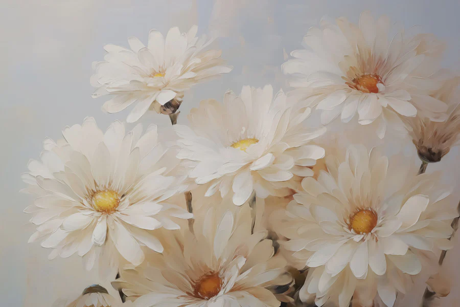 Transform any room into a blooming paradise with this “Group of White Flowers” mural. Imagine walking into a space where each petal whispers calm and elegance. The soft hues remind one of serene mornings, where the sun kisses the dewy blossoms. Perfect for those cozy reading nooks or even a lively dining area—just picture the conversations that could bloom surrounded by these lovely florals.