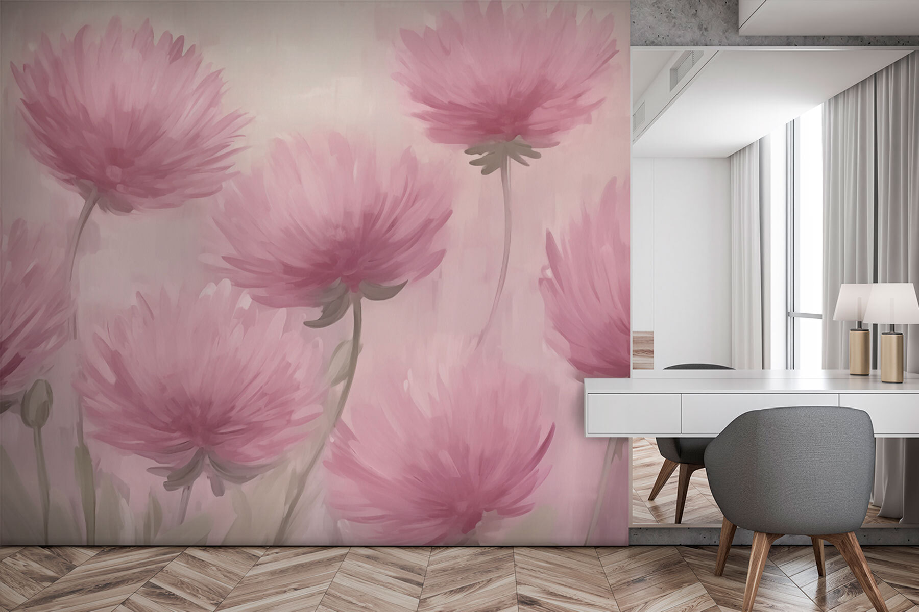 Tover elke kamer om in een bloeiend wonderland met deze betoverende muurschildering van roze bloemen. Stel je voor dat je wakker wordt met tere bloemblaadjes die op de muren dansen en je uitnodigen om de dag met een glimlach te beginnen. Het is alsof je een tuin in je woonkamer hebt, zonder dat je groene vingers nodig hebt. De zachte tinten creëren een kalme, knusse sfeer – perfect om lekker in weg te kruipen met een goed boek of om koffie te drinken terwijl je wegdroomt. Of het nu in de woonkamer is of in een serene slaapkamer, deze muurschildering belooft elke dag vreugde en een vleugje eigenzinnigheid te brengen. Iemand een instant stemmingsbooster?