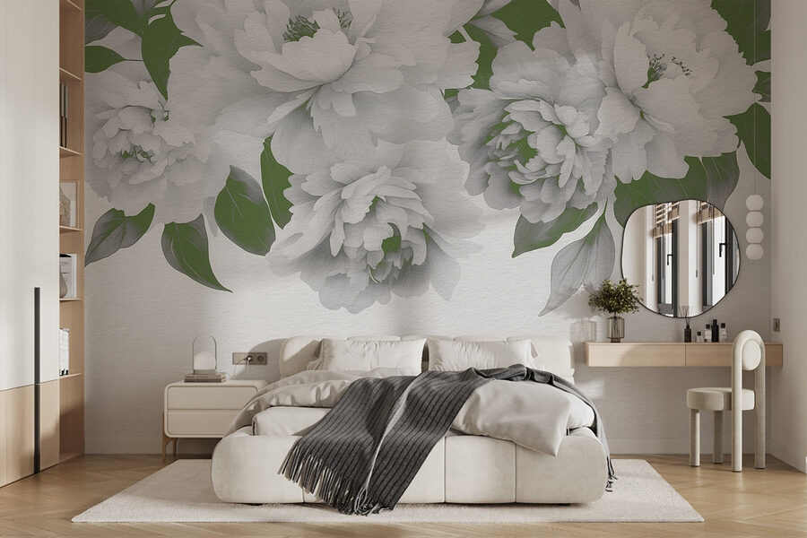 Tover elke ruimte om in een serene tuin met deze prachtige muurschildering met een groep elegante witte bloemen en weelderige groene bladeren. Stel je voor dat je wakker wordt met deze rustgevende aanblik, waar de eenvoud van de natuur en artistieke flair elkaar ontmoeten. Het is als een frisse wind die warmte en rust in je huis brengt. Perfect voor een gezellige woonkamer of een rustige slaapkamer, deze bloemen verwelken niet; ze brengen elke dag die dromerige sfeer. Het is een prachtige manier om wat charme en karakter toe te voegen – water geven is niet nodig! Dus waarom genoegen nemen met effen muren als een bloemrijk meesterwerk je dag kan opfleuren?
