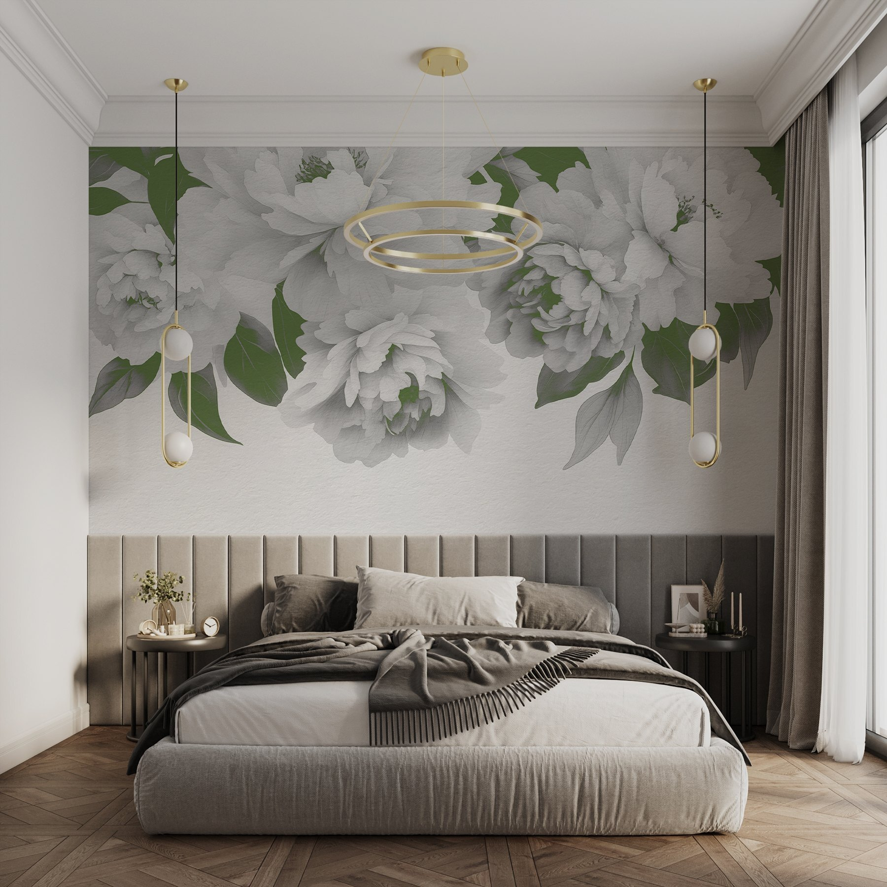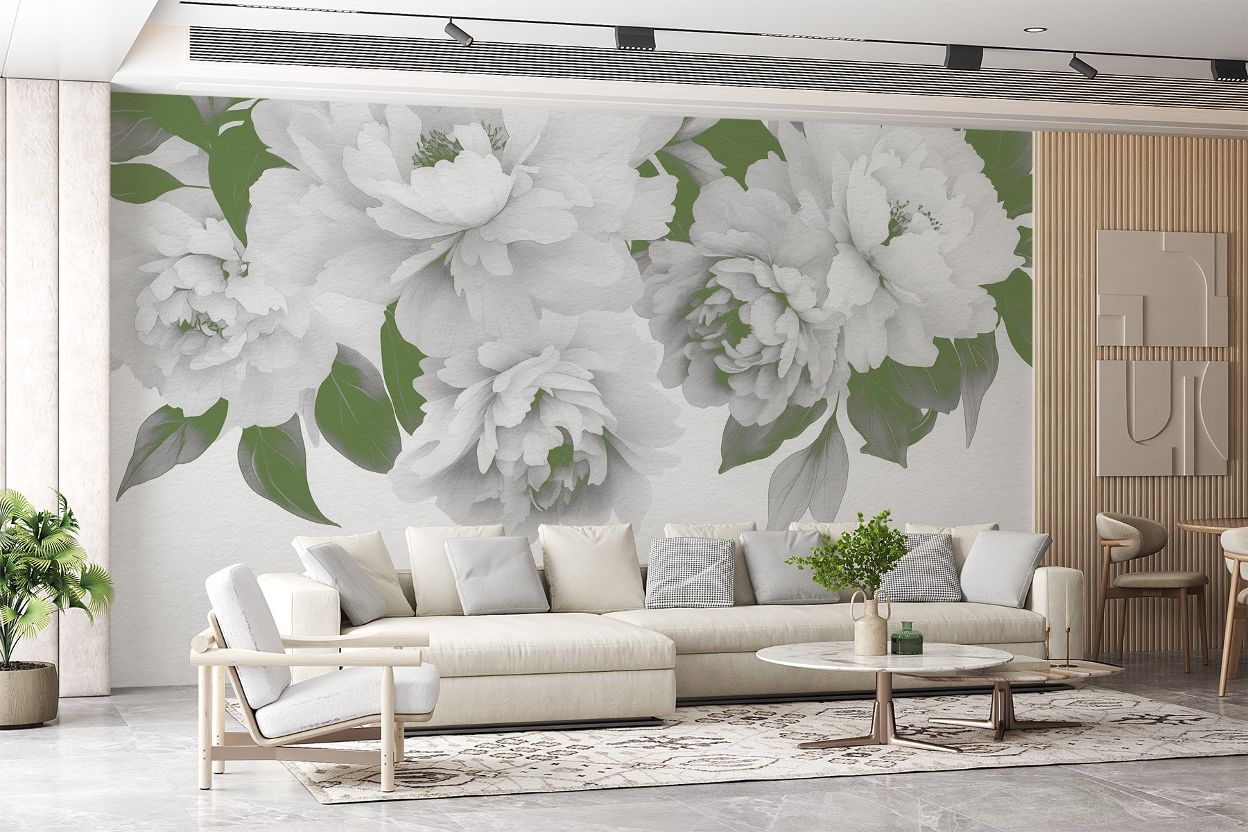Tover elke ruimte om in een serene tuin met deze prachtige muurschildering met een groep elegante witte bloemen en weelderige groene bladeren. Stel je voor dat je wakker wordt met deze rustgevende aanblik, waar de eenvoud van de natuur en artistieke flair elkaar ontmoeten. Het is als een frisse wind die warmte en rust in je huis brengt. Perfect voor een gezellige woonkamer of een rustige slaapkamer, deze bloemen verwelken niet; ze brengen elke dag die dromerige sfeer. Het is een prachtige manier om wat charme en karakter toe te voegen – water geven is niet nodig! Dus waarom genoegen nemen met effen muren als een bloemrijk meesterwerk je dag kan opfleuren?
