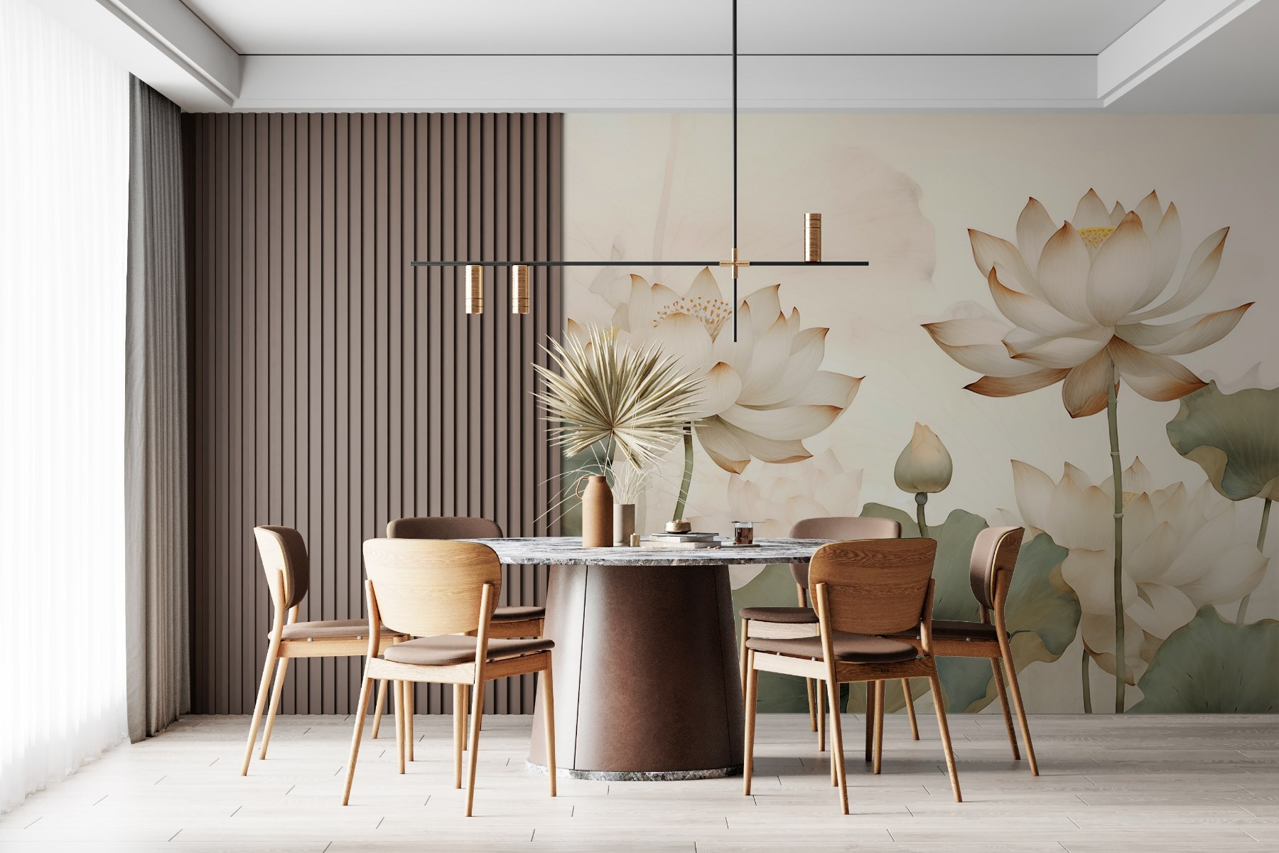 Bekijk precies hoe je ruimte eruit zal zien met nieuw behang voordat je tot aankoop overgaat. Professionele visualisatie door deskundige ontwerpers zonder kosten of aankoopverplichting.