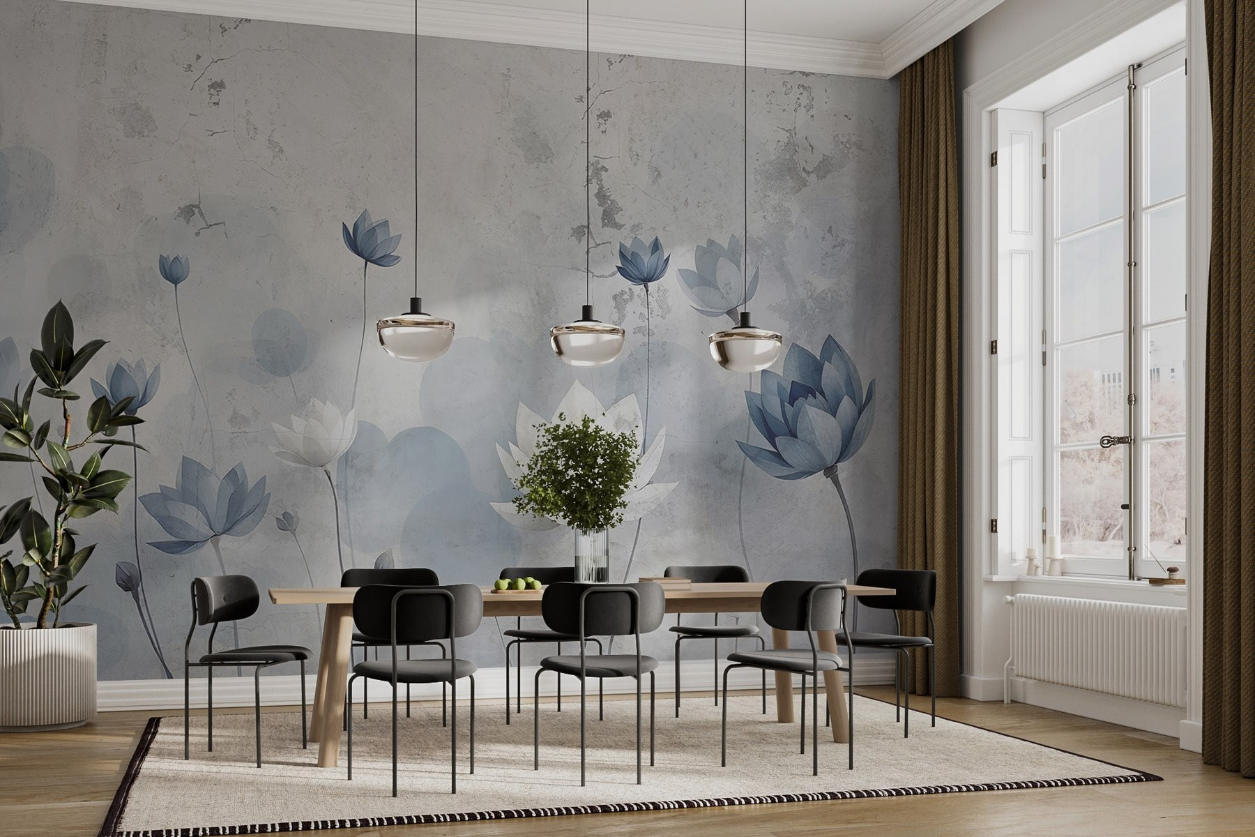 Transformeer elke kamer met deze betoverende muurschildering met delicate bloemen die langs je muren lijken te dansen. Stel je voor dat je elke dag in een rustgevende oase stapt, omringd door zachte blauw- en wittinten. Het is alsof je thuis een botanische tuin hebt, zonder de gieter en het gedoe. Vrienden zouden je zelfs kunnen vragen of je een geheime groene vingers hebt!