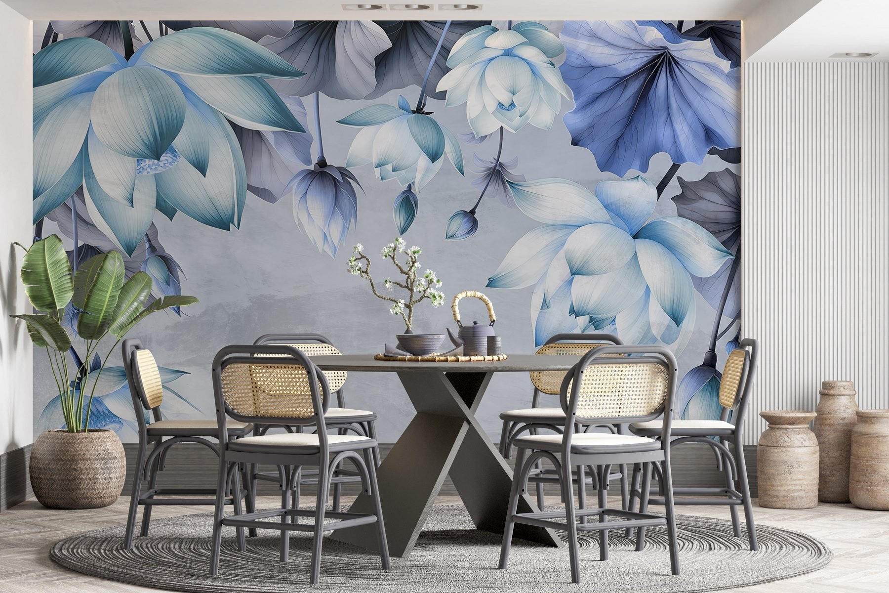 Tover elke kamer om in een bloeiend paradijs met deze prachtige muurschildering “Fijne bloemen in zachte tinten”. Stel je zachte bloemblaadjes voor die over je muren dansen en een serene sfeer creëren die de ziel tot rust brengt. Stel je voor dat je een ruimte binnenloopt die aanvoelt als lente, ongeacht het seizoen. De zachte blauwe tinten wikkelen zich om je heen als een knusse deken na een lange dag. Het is niet alleen decor; het is onmiddellijke rust. Vrienden zullen je complimenteren met de heerlijke ambiance terwijl jij van je thee nipt en vol ontzag probeert niet te morsen. Perfect voor elk hoekje dat een vleugje charme van de natuur nodig heeft!