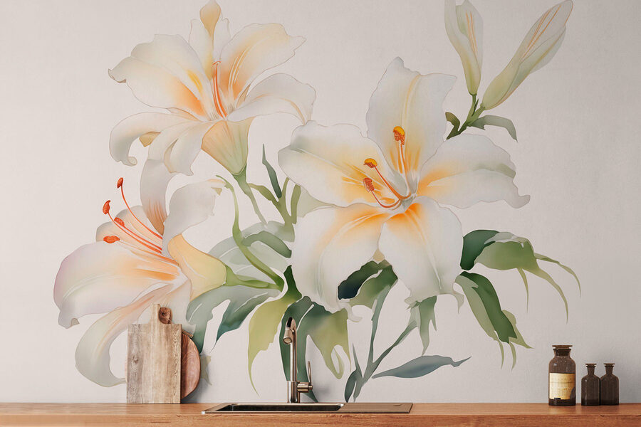 Fleur elke ruimte op met de muurschildering “Group of White Flowers” – een perfecte manier om een vleugje natuur in huis te halen. Stel je voor dat je een kamer binnenloopt en het gevoel hebt dat je een serene tuin bent binnengestapt, waar deze elegante bloemen in volle bloei staan en frisheid uitstralen. De zachte kleuren creëren een sfeer die zowel rustgevend als opbeurend is – ideaal om tot rust te komen na een lange dag of om de creativiteit tijdens het werk te stimuleren. Zie het voor je in een gezellige leeshoek of boven een chique bank. Opeens zijn je muren geen gewone muren meer, maar een canvas van rust dat verhalen van bloeiende schoonheid fluistert. En vrienden zullen zeker willen weten waar de inspiratie vandaan kwam.