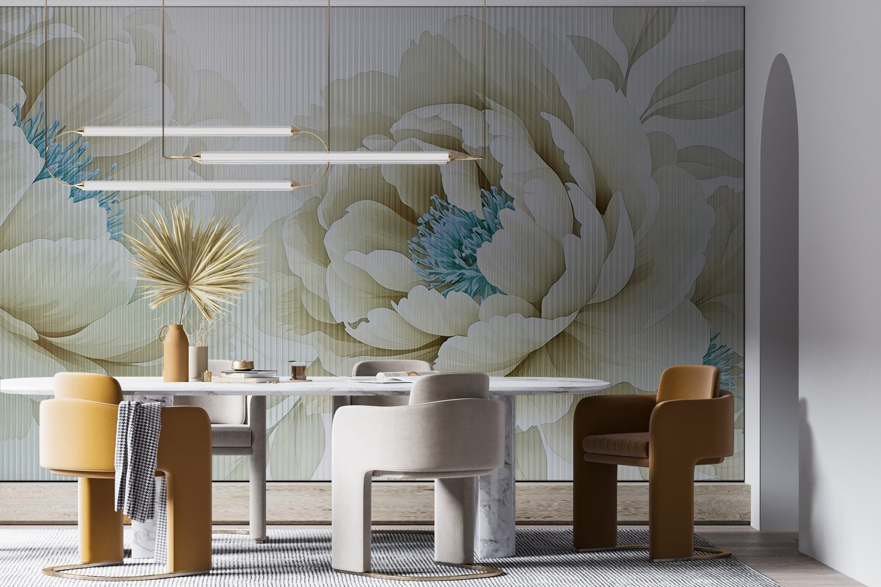 Transformeer elke ruimte met “Delicate Blooms in Soft Hues”, een muurschildering die elegantie en charme uitstraalt. Stel je voor dat je een kamer binnenloopt waar zachte pioenrozen je begroeten, hun zachte bloemblaadjes ontvouwen zich alsof ze hallo willen zeggen. De subtiele kleuren dansen samen en creëren een serene sfeer die perfect is om tot rust te komen na een lange dag. Vrienden zouden commentaar kunnen geven op de vredige sfeer en je zou bijna het zachte geritsel van bladeren in een lentebriesje kunnen horen. Het is het soort achtergrond dat elke bijeenkomst een beetje specialer maakt en uitnodigt tot warmte en plezier. Haal de natuur in huis – deze muurschildering zou wel eens kunnen inspireren tot een beetje dagdromen.