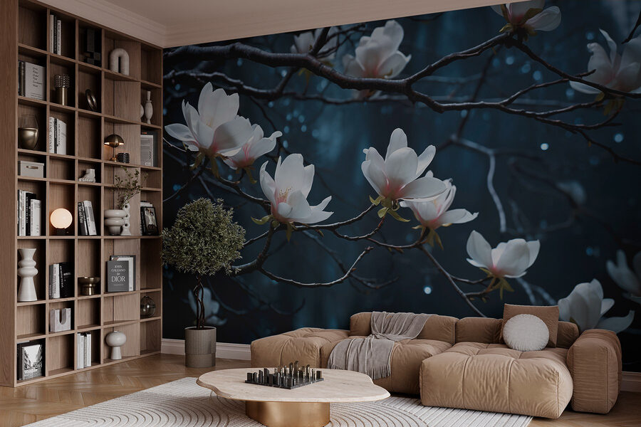 Transformeer je ruimte met de Fotobehang Boom met Witte Bloemen. Stel je voor dat je een kamer binnenloopt die aanvoelt als een vredig bosje in de lente. Die mooie, delicate bloemen steken af tegen de serene achtergrond en nodigen uit tot kalmte. Het is bijna alsof je een rustig stukje natuur in huis haalt, waar je aan je koffie kunt nippen en kunt dagdromen zonder je zorgen te maken. Vrienden zullen misschien even stoppen en staren, denkend dat je een tuin hebt verborgen achter die muur! Deze muurschildering is perfect voor een gezellig hoekje of een chique accentmuur en geeft een frisse uitstraling. Wie wil er nou geen natuur binnenshuis?