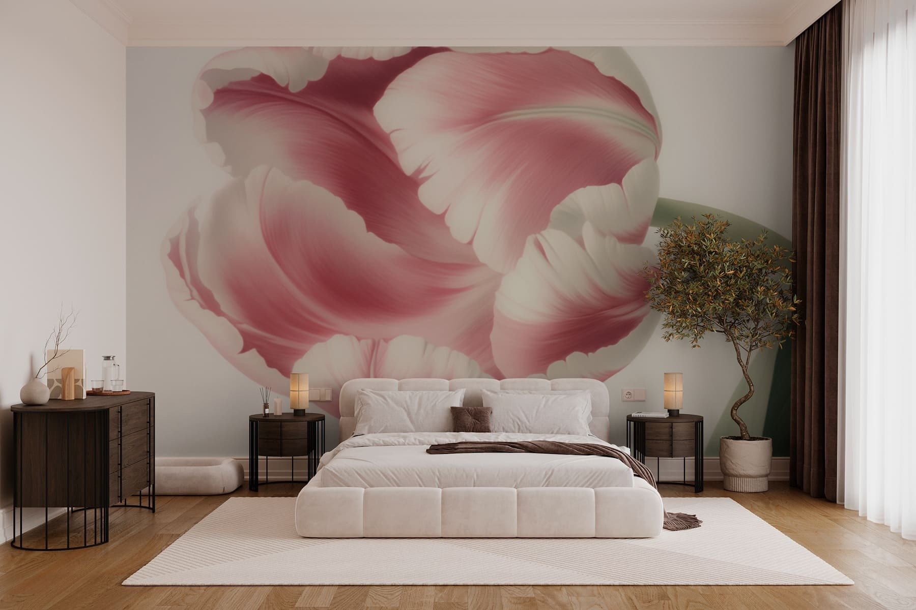Verander elke kamer in een sereen toevluchtsoord met deze prachtige muurschildering, “Delicate Petals in Soft Hues”. Stel je voor dat je je kamer binnenstapt en begroet wordt door prachtige bloemen die zoete woordjes lijken te fluisteren. De zachte kleuren brengen een vleugje natuur in je huis, waardoor het rustig en gezellig aanvoelt. Perfect voor een slaapkamer, woonkamer of zelfs een gezellig hoekje, het is alsof je een tuin hebt die nooit verwelkt. Vrienden plagen misschien over je groene vingers, maar wie heeft dat nodig als deze muurschildering het kan? Het is als een knuffel voor je muren, die uitnodigt tot warmte en charme.