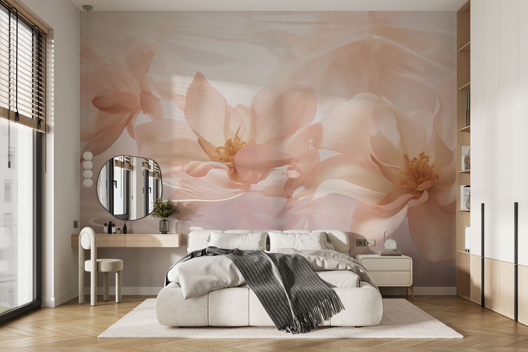 Transformeer je ruimte met deze dromerige muurschildering van roze bloemen die sierlijk in het water drijven. Perfect voor de dagen dat de natuur een beetje te ver weg voelt, brengt dit stuk een gevoel van rust in elke kamer. Stel je voor dat je wakker wordt met zachte bloemen die zachtjes glijden en delicate geheimen van sereniteit fluisteren. Het is net alsof je een stukje lente aan je muur hebt hangen, zonder dat je tuiniersvaardigheden nodig hebt. Gasten zouden wel eens een dubbele blik kunnen werpen en vragen waar de tuinkabouters zich verstoppen. Het is een vleugje elegantie gemengd met een rustige sfeer, perfect voor knusse hoekjes of lichte open ruimtes. Haal warmte en schoonheid in huis en laat de bloemen je inspireren tot dagdromen.