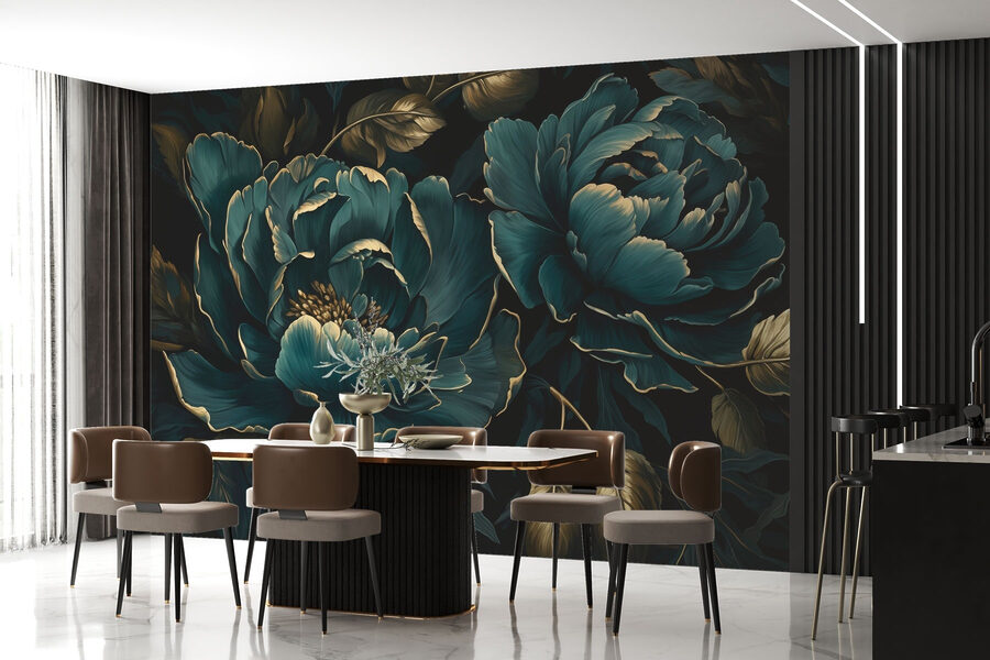 Tover elke kamer om in een levendige oase met deze prachtige muurschildering met prachtige bloemen in diepe tinten. Stel je eens voor dat je de ruimte binnenstapt waar je omringd wordt door uitvergrote pioenrozen en weelderig gebladerte. Het is alsof je elke dag een persoonlijke botanische ontsnapping hebt! De kleuren zijn krachtig en rijk en roepen gevoelens van warmte en vreugde op. Perfect voor die muur die wel wat liefde kan gebruiken of misschien gewoon voor een praatje met een vriendin bij de koffie. Wie zou er niet glimlachen in een kamer versierd met zulke dramatische bloemen?