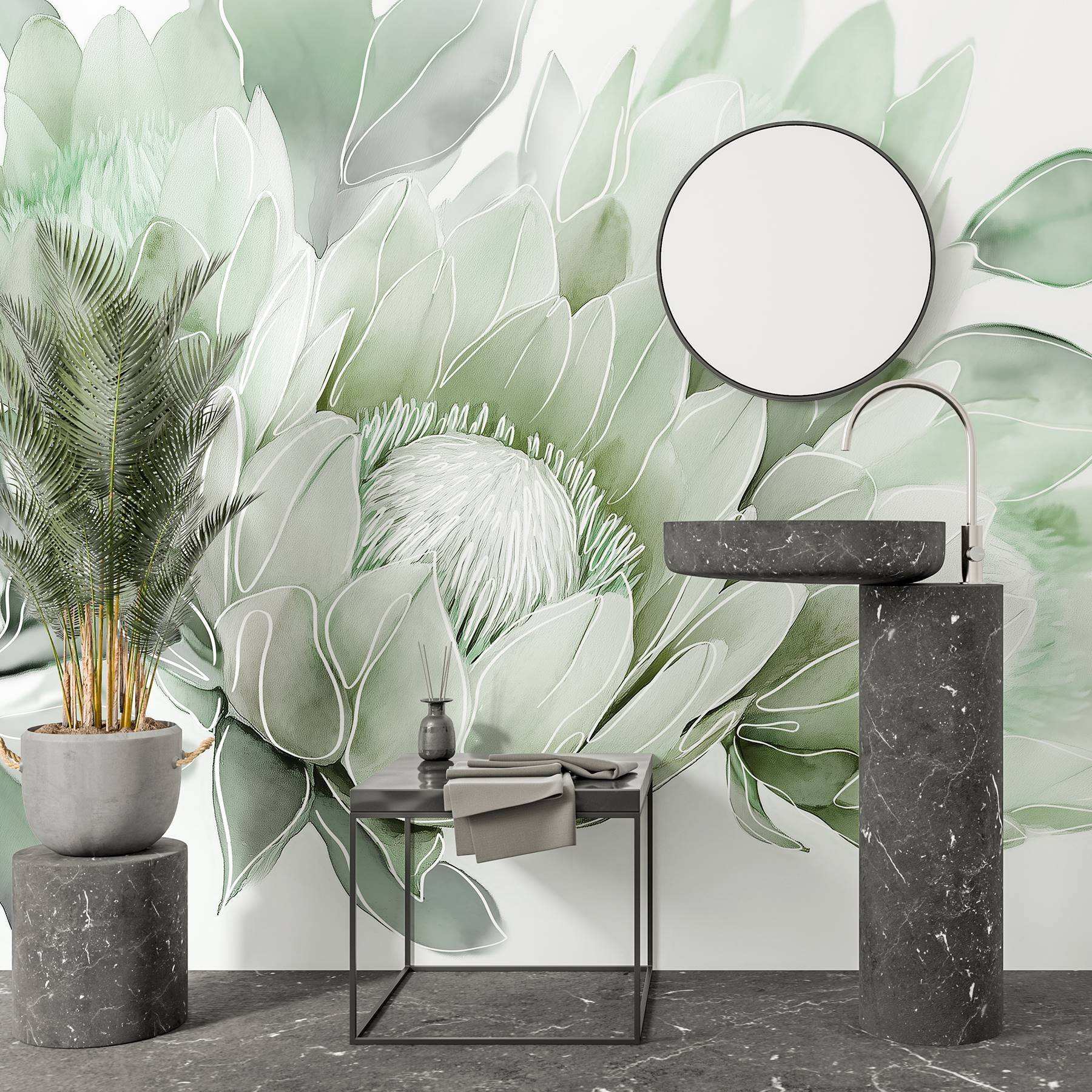 Verander elke kamer in een serene ontsnapping met de muurschildering “Delicate Flowers in Soft Pastels”. Stel je voor dat je wakker wordt met een zachte bloei van rustgevende kleuren, en breng die dromerige tuinsfeer rechtstreeks naar je muren. Het voelt als een frisse wind – zonder allergieën, beloofd! Of het nu de woonkamer is of een gezellig leeshoekje, deze muurschildering wiegt sierlijk met zachte bloemblaadjes en nodigt uit tot warmte en rust. Stel je voor dat je thee drinkt terwijl je de subtiele schoonheid om je heen bewondert. Dit is niet zomaar een decor; het is een ervaring, een dagelijkse herinnering dat de kunst van de natuur slechts een oogopslag van je verwijderd is. Perfect voor wie houdt van een vleugje elegantie vermengd met een vleugje eigenzinnigheid.