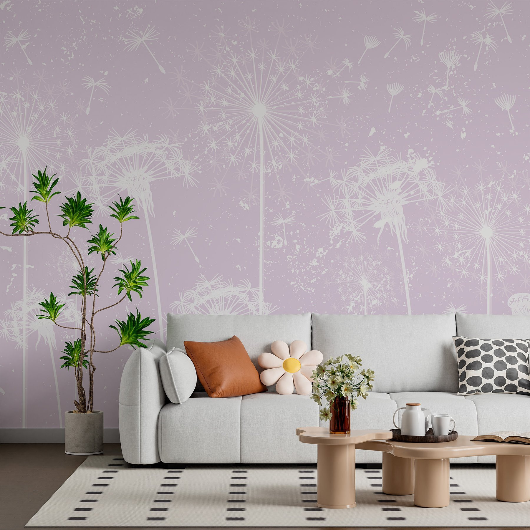 Stel je voor dat je een serene ruimte binnenstapt gevuld met het zachte gefluister van paardenbloempluis dat danst in de wind. Deze muurschildering, met zacht witte paardenbloemen tegen een blush achtergrond, verandert elke kamer in een dromerige ontsnapping. Het is alsof je een frisse wind door je huis laat waaien. Stel je voor dat je lekker wegkruipt met een boek, terwijl deze delicate bloemblaadjes het licht vangen terwijl je van je favoriete thee nipt. Vrienden zullen misschien zeggen: “Wow, waar heb je dat gevonden?”. En eerlijk, wie houdt er niet van de geheime sensatie van een unieke vondst? Bovendien symboliseren paardenbloemen hoop en wensen – perfect voor een plek die je dierbaar is. Het is meer dan decor; het is een ervaring die wacht om zich te ontvouwen.