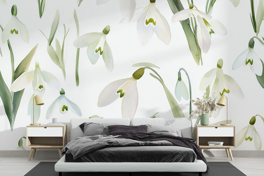 Transformeer elke kamer met deze charmante muurschildering met een prachtig patroon van witte bloemen. Stel je voor dat je een ruimte binnenloopt waar deze zoete bloemen een frisse wind laten waaien, een beetje zoals de lente die naar binnen sluipt wanneer je het het minst verwacht. Zacht groen en zacht wit dansen over de muur en creëren een vredige sfeer die aanvoelt als een gezellige tuin. Stel je voor dat je in de buurt thee drinkt en je rustig en geïnspireerd voelt terwijl je omringd bent door de schoonheid van de natuur. Het is alsof je een stukje sereniteit in huis haalt. Perfect om een woonkamer, slaapkamer of zelfs een creatief hoekje op te fleuren!