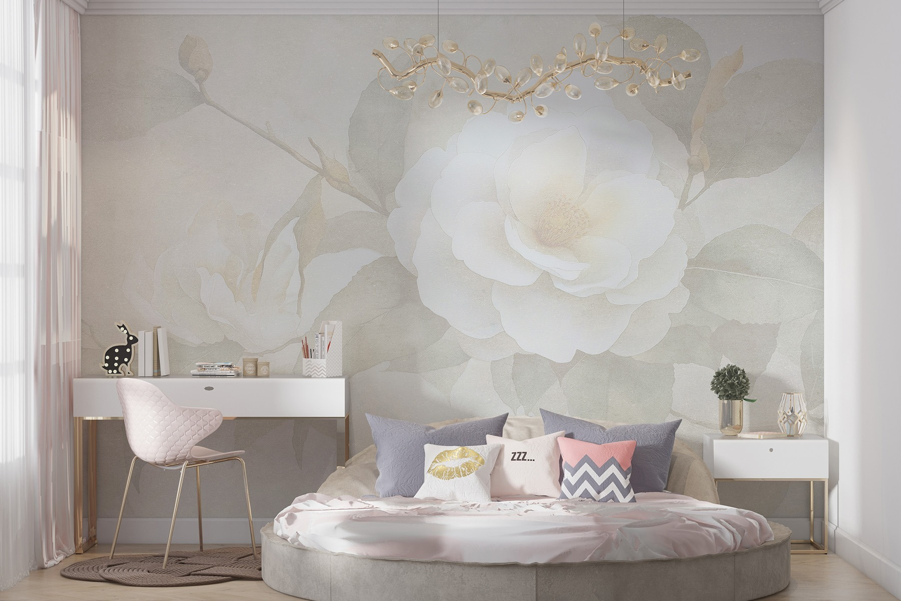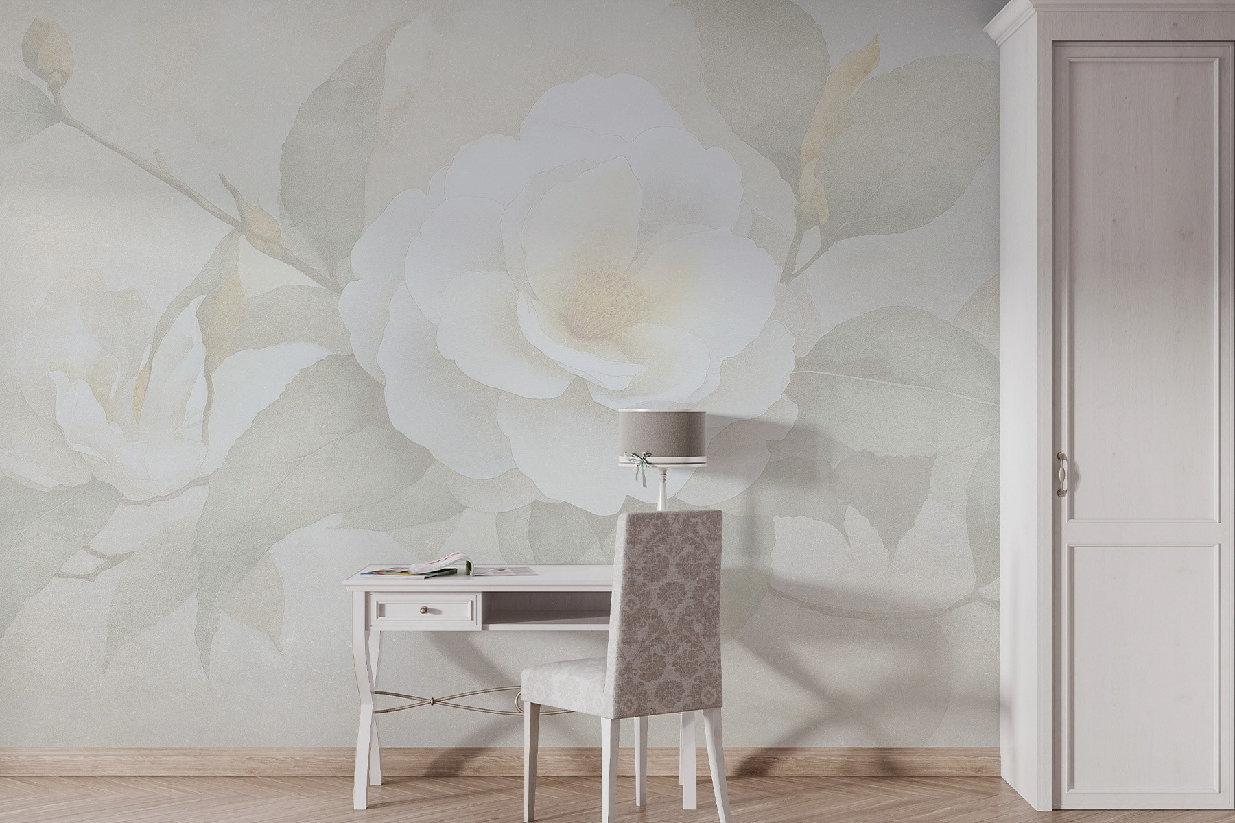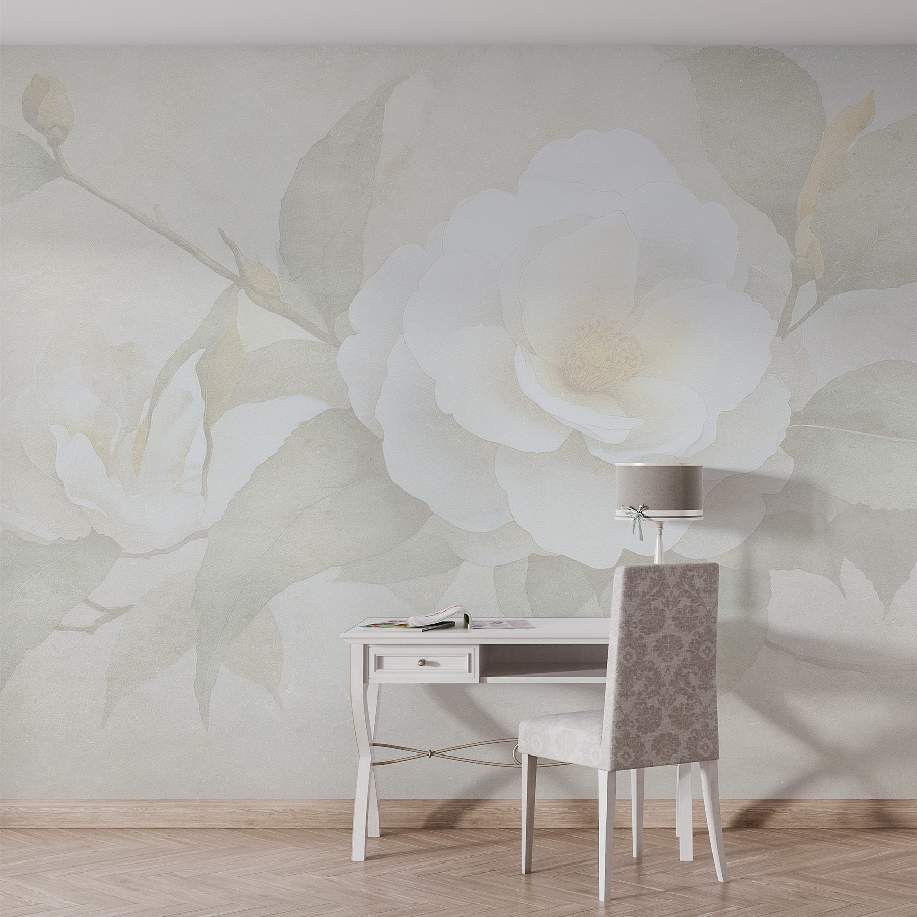 Transformeer je ruimte met de rustgevende charme van de muurschildering “Witte bloem met groene bladeren”. Dit ontwerp brengt een vleugje natuur binnenshuis, waardoor elke dag aanvoelt als een zachte wandeling in een bloeiende tuin. Stel je voor: een zonnige middag, je favoriete boek in de hand en deze prachtige muurschildering als knusse achtergrond. De zachte witte en groene tinten creëren een serene sfeer die elke kamer opfleurt. Het is als een frisse wind, zonder het niezen! Deze muurschildering is perfect voor woon- of slaapkamers en brengt een vleugje rust in het dagelijks leven. Bovendien is het een geweldige gespreksstarter als vrienden langskomen. Dus maak je klaar om ze te verbazen!
