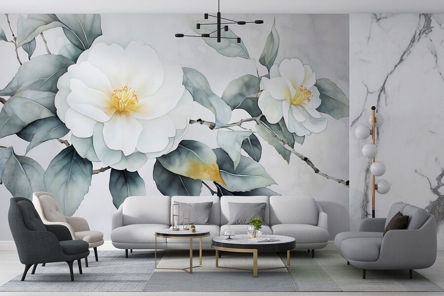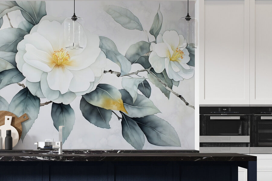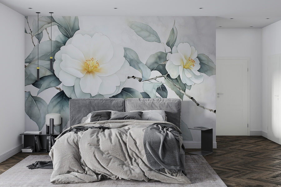 Maak van een saaie muur een serene plek met deze mooie witte bloemenmuurschildering met zachtgroene bladeren. Het is alsof je een frisse wind binnenlaat zonder dat je iets water hoeft te geven. Deze muurschildering is perfect voor dagen waarop een beetje groen de stemming kan opkrikken en creëert een rustgevende achtergrond voor elke kamer. Stel je voor dat je ‘s ochtends aan je koffie nipt terwijl je naar deze schoonheid staart – het is bijna een mini-vakantie. Bovendien is het een geweldige gespreksstarter, vooral als gasten naar je “geheime tuin” vragen. Wie heeft er een complete bloemrijke make-over nodig als deze muurschildering het ook doet?