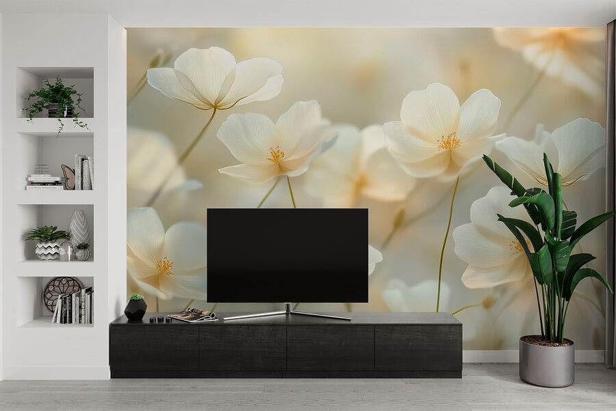 Transformeer elke ruimte met deze prachtige muurschildering met een zachte groep witte bloemen. Stel je voor dat je een kamer binnenloopt en je meteen een rustiger gevoel krijgt, alsof je door een serene tuin wandelt. De zachte tinten en sierlijke bloemen voegen een vleugje elegantie toe zonder te overweldigen. Het is alsof je de lente thuis hebt, zonder dat je water hoeft te geven! Perfect voor een gezellige leeshoek of een lichte eethoek, deze muurschildering nodigt uit tot warmte en rust. Vrienden zullen je zeker vragen waar je zo’n charmant stuk hebt gevonden. Het gaat allemaal om die kleine details die een groot verschil maken. Verhoog je inrichting een beetje – want wie heeft er geen behoefte aan een vleugje bloemenmagie?