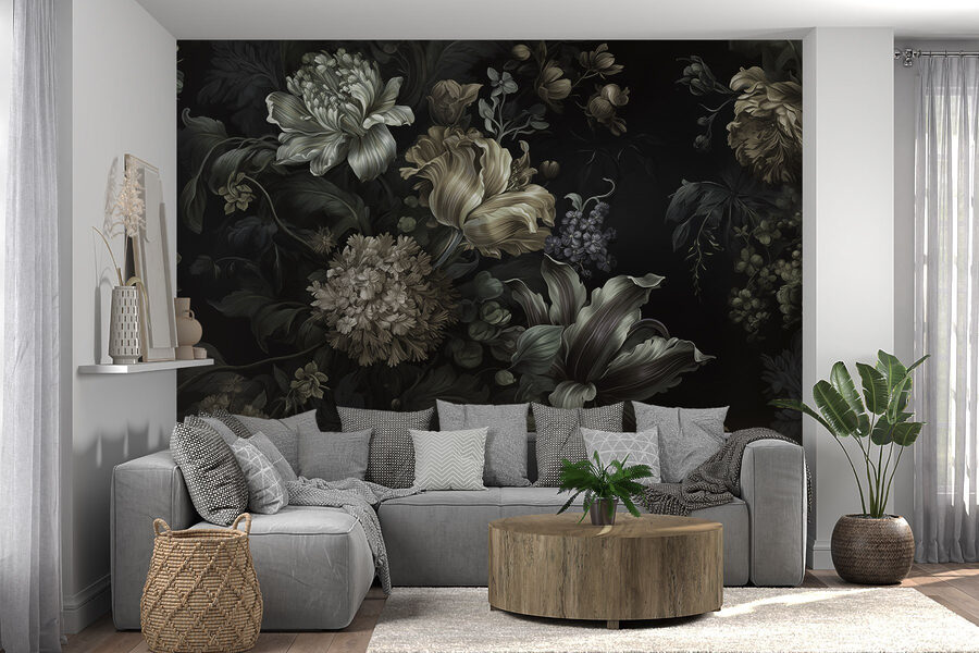 Transformeer elke kamer met deze prachtige muurschildering met bloemen op een chique zwarte achtergrond. Stel je voor dat je je kamer binnenloopt en begroet wordt door een explosie van prachtige bloemen. Het is alsof je een geheime tuin aan je muur hebt! Elke bloem lijkt verhalen te fluisteren van lentewandelingen en gezellige kopjes thee. De subtiele kleuren voegen een vleugje verfijning toe zonder de kamer te overweldigen. Gasten zullen willen blijven hangen, mogelijk met een existentieel moment over de schoonheid. Deze muurschildering decoreert niet alleen, maar verhoogt de sfeer, waardoor elke dag een beetje specialer aanvoelt. Perfect voor degenen die hunkeren naar iets unieks in hun interieur.