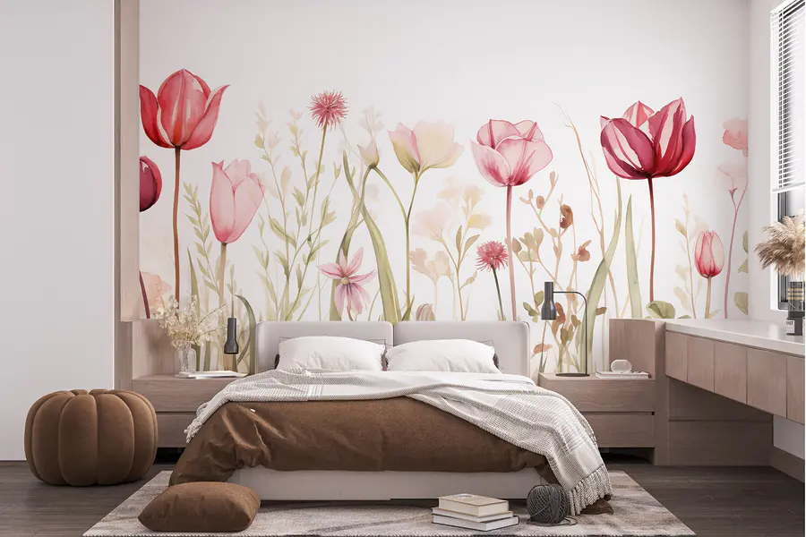 Transformeer elke ruimte met deze prachtige muurschildering met een prachtige reeks bloemen en gras. Stel je voor dat je een kamer binnenloopt en het gevoel hebt dat je een serene tuin bent binnengestapt – bloeiende bloemblaadjes dansen in de wind. Elke bloem lijkt geheimen van de lente te fluisteren en nodigt uit tot warmte en vrolijkheid. Het is perfect om saaie muren op te fleuren of een gezellig hoekje te creëren. Gasten zullen misschien wel even stoppen, met een kop koffie in de hand, om alles in zich op te nemen. Bovendien kan het inspireren tot een paar oprechte gesprekken over favoriete bloemen. Het is meer dan een decorstuk; het is een levendig vleugje natuur dat vreugde opwekt!