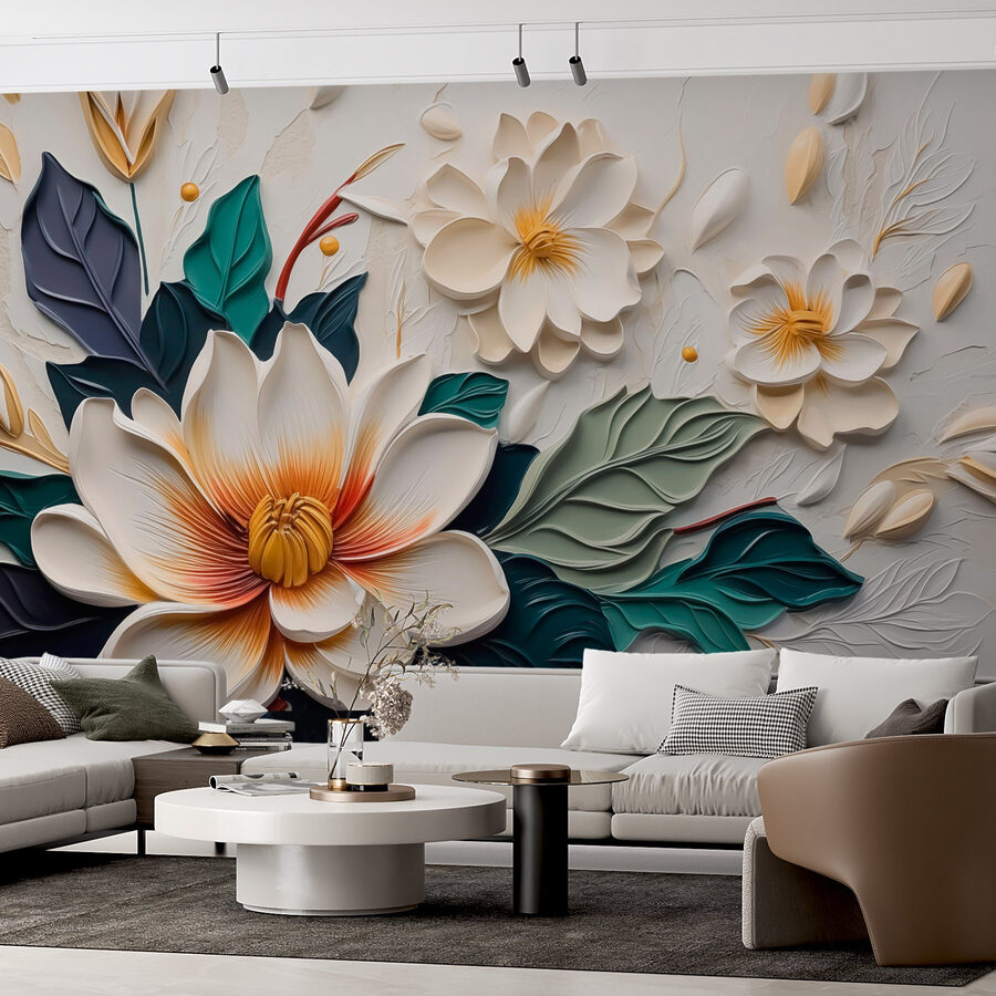 Transformeer je kamer met deze prachtige muurschildering met witte en gele bloemen tussen weelderige groene bladeren. Het is alsof je een tuin in je woonkamer hebt – zonder gieter. Stel je voor hoe deze schoonheid een saaie muur zal opfleuren en een frisse uitstraling zal geven die uitnodigend en vrolijk aanvoelt. Vrienden zullen binnenlopen, het bewonderen en zich afvragen of je het geheim van Zen hebt ontdekt. Het gedetailleerde ontwerp speelt zachtjes met de ogen, waardoor het een genot is om te ontdekken. Perfect voor elke kamer, nodigt het uit tot warmte, creativiteit en een vleugje vreugde in het dagelijks leven. Wie zou dat niet willen?