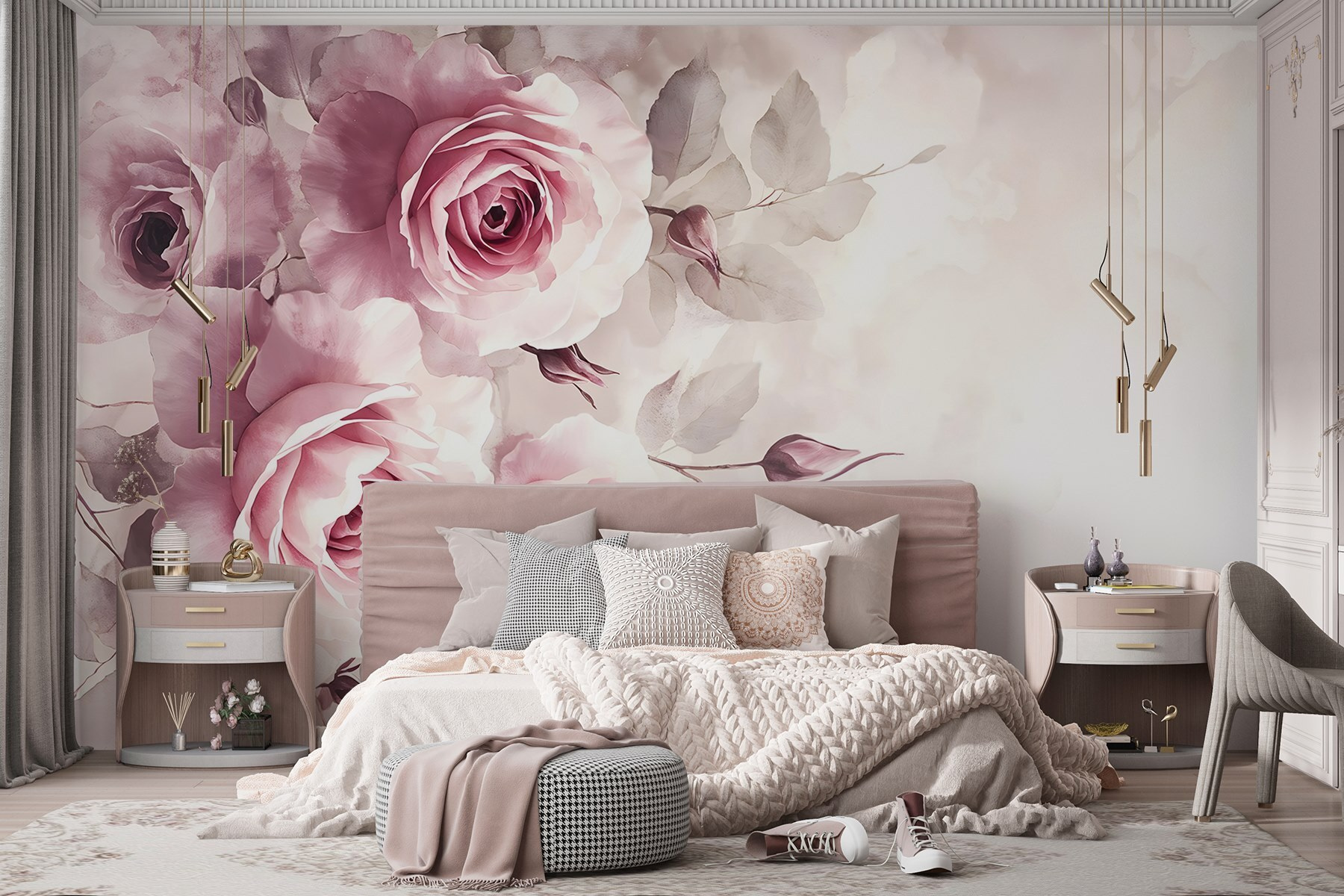 Tover elke kamer om in een serene tuin met deze prachtige muurschildering met een charmante groep roze rozen. Stel je voor dat je elke ochtend wakker wordt met deze zachte, romantische bloemen, alsof de natuur besloten heeft om jouw ruimte persoonlijk te versieren. De zachte tinten voegen warmte toe, perfect voor gezellige avonden die je doorbrengt onder het genot van thee of een glas wijn. Bovendien geven ze precies de juiste kleur zonder overweldigend te zijn.