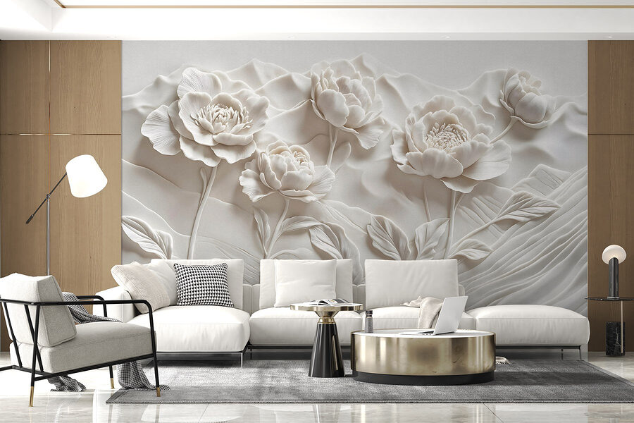 Transformeer je ruimte met deze prachtige muurschildering met delicate witte pioenrozen die tot in de kleinste details zijn uitgesneden. Het is alsof je een serene tuin binnenshuis haalt, maar dan zonder de pollen, die je allergie wegnemen. Stel je voor dat je een kamer binnenloopt waar deze bloemen eindeloos bloeien en een kalme sfeer uitstralen. De zachte texturen en subtiele tinten creëren een gezellige sfeer die rust uitstraalt. Het is niet alleen decoratie, het is een ervaring. Perfect voor een woonkamer of een rustig leeshoekje. Vrienden denken misschien dat je op een luxe tuinretraite bent geweest – wie hoeft te weten dat het allemaal in de muur zit?