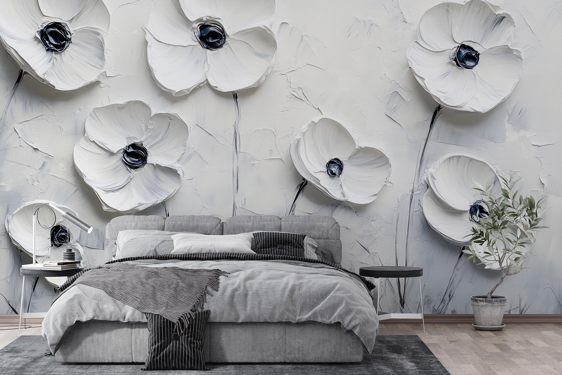 Transformeer elke kamer met deze prachtige muurschildering met elegante witte bloemen die zo van de muur af lijken te bloeien. Stel je voor dat je je kamer binnenloopt en begroet wordt door deze pioenroos en rozenpracht, die je humeur direct oppeppen. De zachte texturen en zachte kleuren creëren een serene achtergrond, perfect om koffie te drinken op luie ochtenden of vrienden te ontvangen voor het diner. Het is alsof je een tuin in huis haalt, zonder de vervelende pollen! Deze muurschildering voegt een vleugje charme en eigenzinnigheid toe aan elke hoek, waardoor elke blik voelt als een kleine ontsnapping in de natuur. Dus laat je muren maar zingen!