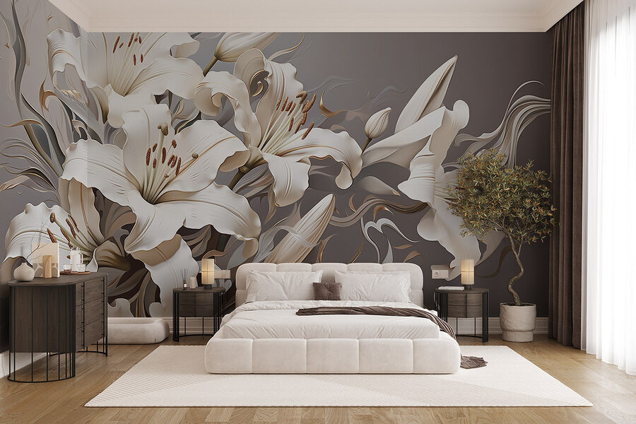 Transformeer je kamer met deze prachtige muurschildering met elegante witte bloemen die zacht bruin kleuren. Het is alsof je een tuin in je woonkamer hebt – zonder de pollen! Stel je voor dat deze bloesems je muren opfleuren en een vleugje verfijning toevoegen zonder al te veel moeite te doen. De zachte rondingen en warme tinten creëren een gezellige sfeer, perfect voor luie zondagochtenden met koffie in de hand. Of het nu de achtergrond is voor gezellige praatjes of een rustig leeshoekje, deze muurschildering biedt een stukje natuur dat nooit verwelkt. Wie wist dat woondecoratie zo dromerig kon zijn?