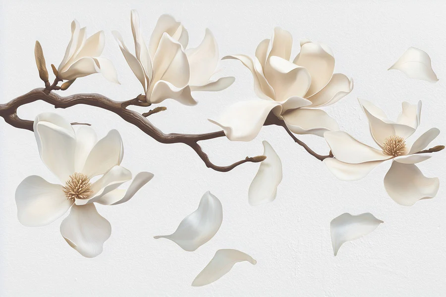 Transform any space with this stunning wall mural featuring delicate branches adorned with white flowers and petals. It’s like having a spring garden right in your living room, minus the sneezing. Imagine sipping coffee while gazing at those blossoms — they almost seem to sway in the breeze. This mural brings a light, airy vibe that just invites warmth and relaxation. A perfect backdrop for cozy chats or quiet moments, it’s hard not to smile when entering the room. Plus, it’s an easy way to elevate decor without heavy lifting. Bloom where you’re planted, right?