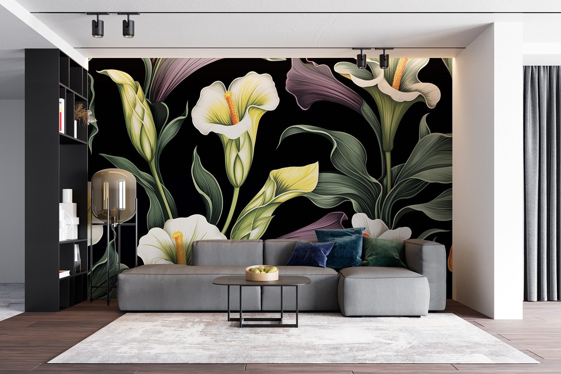 Wilt u uw ruimte een vleugje kleur geven? Dan is deze levendige bloemenmuurschildering precies wat u zoekt! Tegen een dramatische donkere achtergrond lijken deze bloeiende schoonheden bijna van de muur af te dansen. Stelt u zich eens voor dat u een kamer binnenloopt waar elke blik voelt alsof u een weelderige tuin binnenstapt – gelukkig zonder gieter of vervelende bijen. Het is als een glimlach van de natuur, die zelfs op de somberste dagen warmte en vrolijkheid brengt. Perfect voor een gezellig leeshoekje of die ene muur die net een beetje liefde nodig heeft, het is een vrolijk gespreksonderwerp. Wie zou zich niet een beetje gelukkiger voelen omringd door zulke levendige bloemen? Bovendien is het een geweldig excuus voor meer koffieafspraakjes: “Oh, kunnen we bij de bloemenmuur gaan zitten? Die is zo mooi!” Wie had gedacht dat decoratie vriendschap kon stimuleren? 🌼