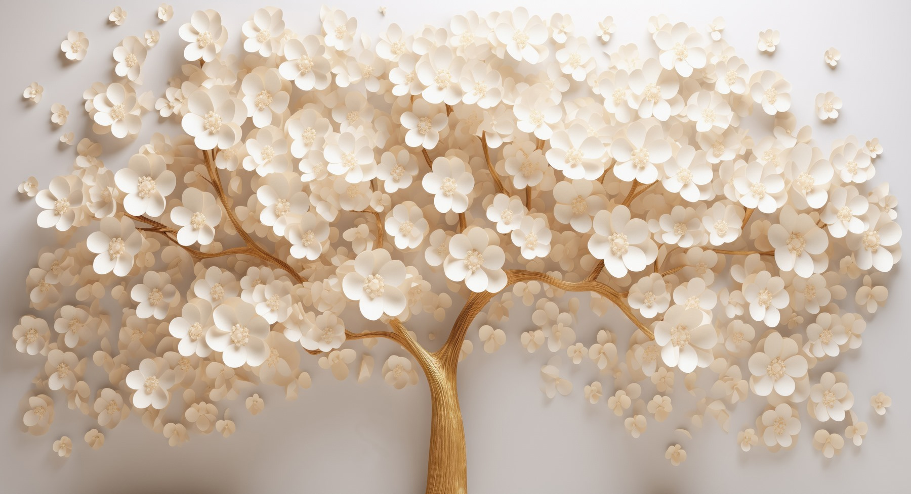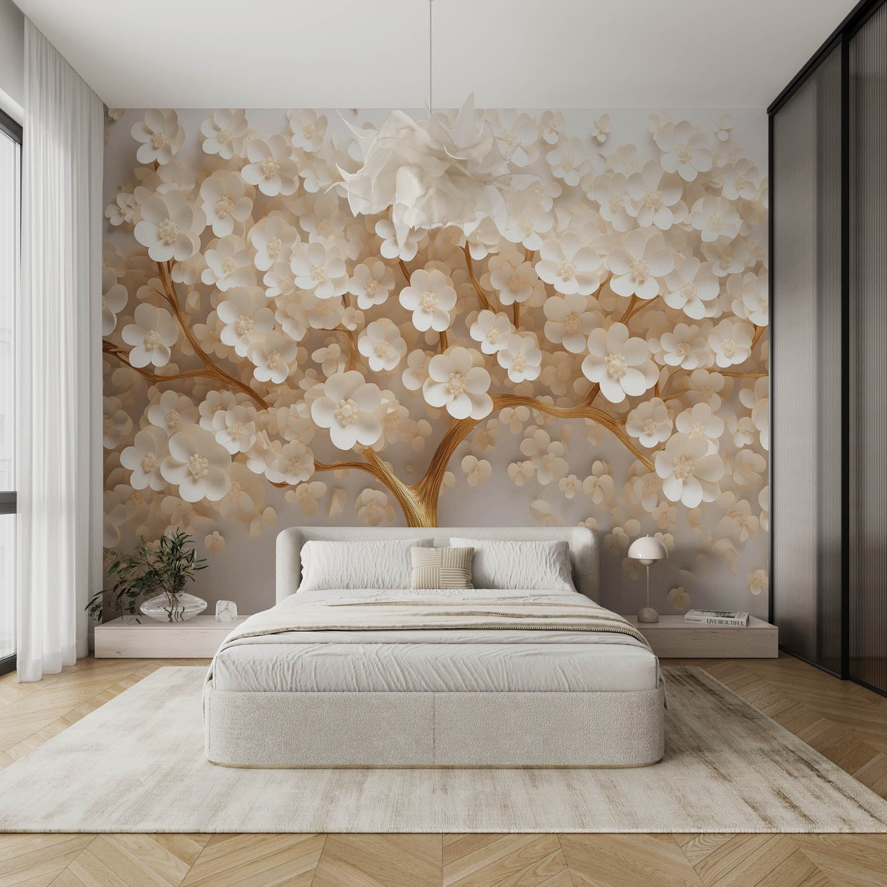 Stap binnen in een serene paradijs met deze betoverende muurschildering, “Boom met witte bloemen”. Stel je een delicate boom voor die barst van de bloesems en elke ruimte omtovert tot een rustig toevluchtsoord. De zachte, crèmekleurige bloemblaadjes en stevige takken creëren een zacht contrast dat gewoonweg prachtig is. Het is alsof je het hele jaar door de lente in huis hebt, maar dan zonder allergieën!