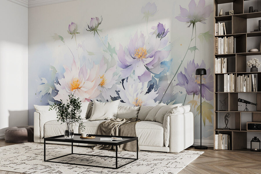 Fotobehang Schilderij van bloemen op een witte achtergrond (SKU: w08883)