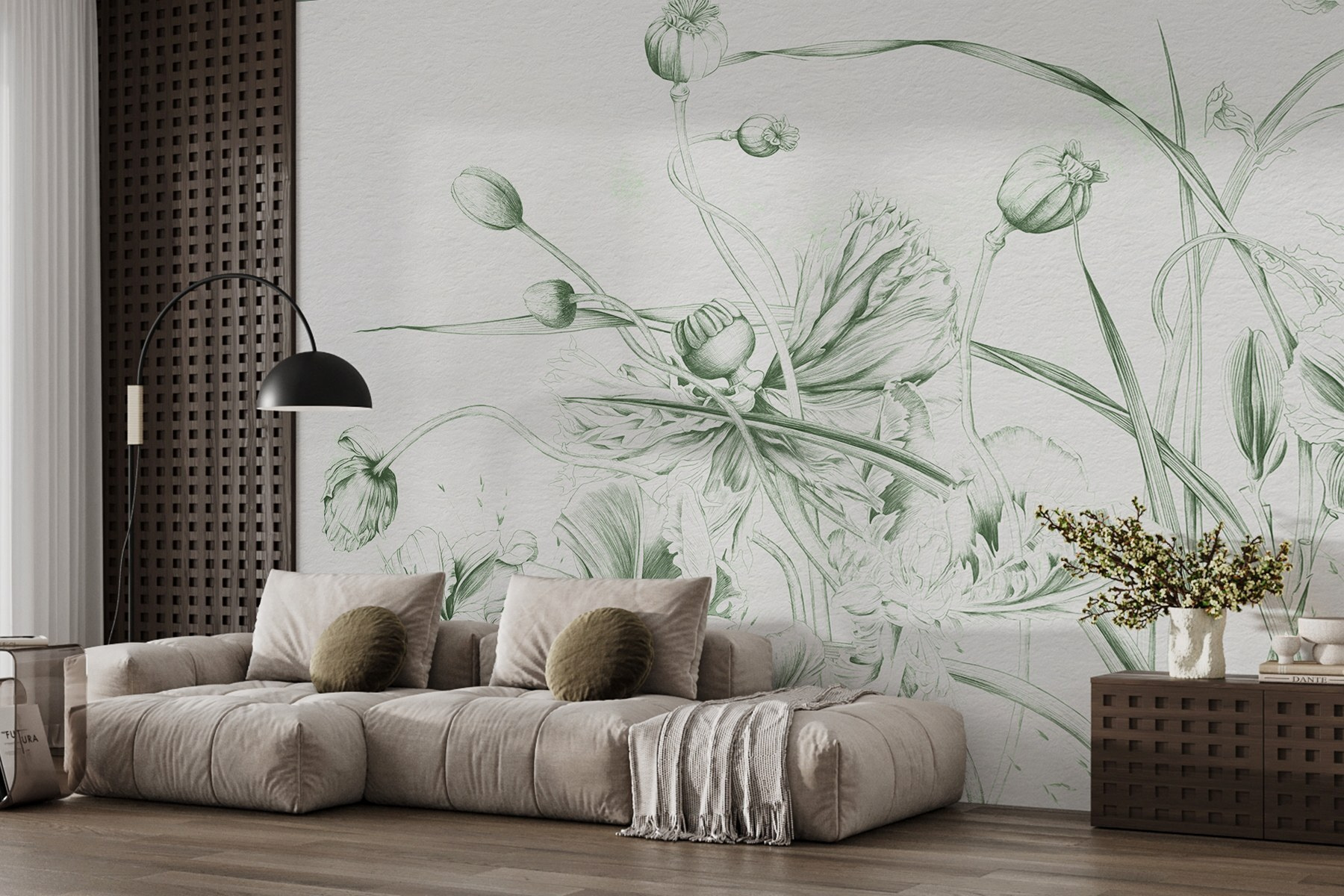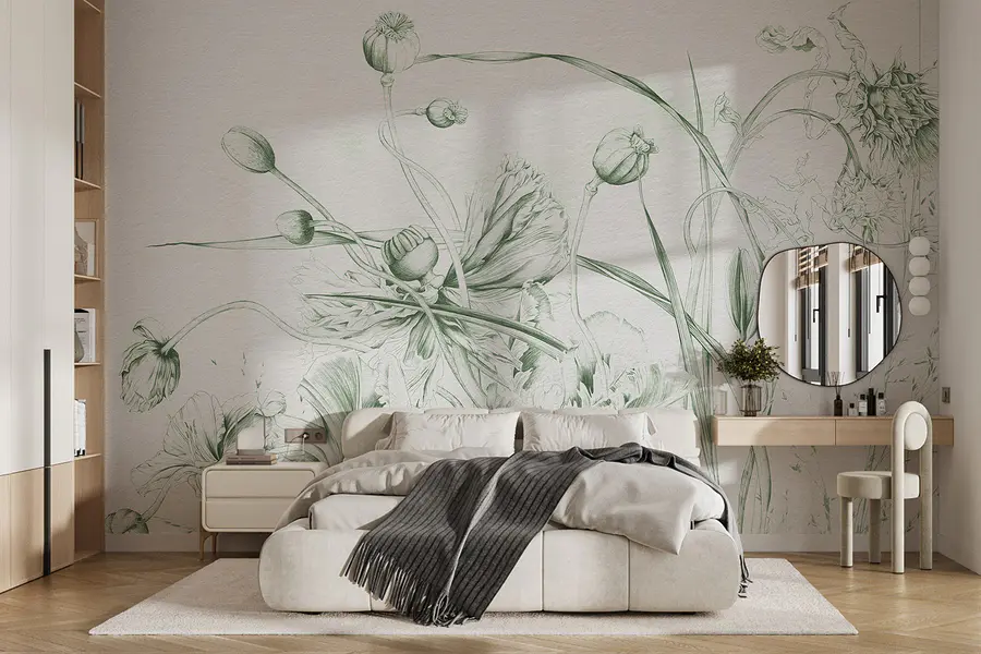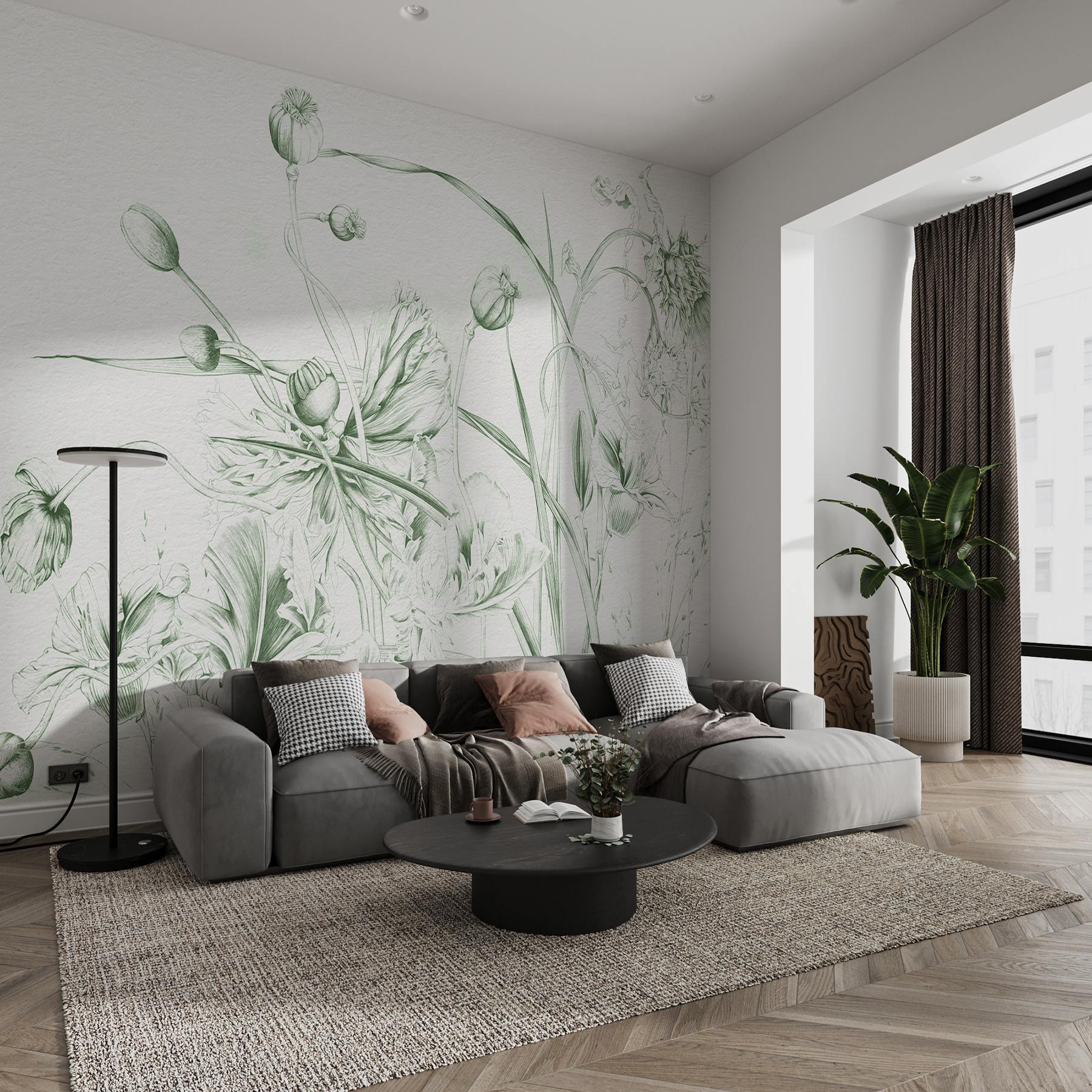 Verander elke kamer in een gezellig toevluchtsoord met deze prachtige muurschildering met een delicate dans van bloemen en bladeren. Stel je voor dat je koffie drinkt terwijl je wordt omringd door het kunstwerk van de natuur – dat zachte vleugje groen doet echt wonderen voor de ziel. Het voelt alsof je een serene tuin binnenshuis haalt, zonder je zorgen te maken over water geven of vervelende insecten. Of het nu een woonkamer, slaapkamer of zelfs een gang is, deze muurschildering nodigt uit tot warmte en kalmte. En bonuspunten voor het inspireren van creativiteit! Perfect voor dagdromers en kunstliefhebbers. Het is alsof je een botanische galerie aan je muur hebt.