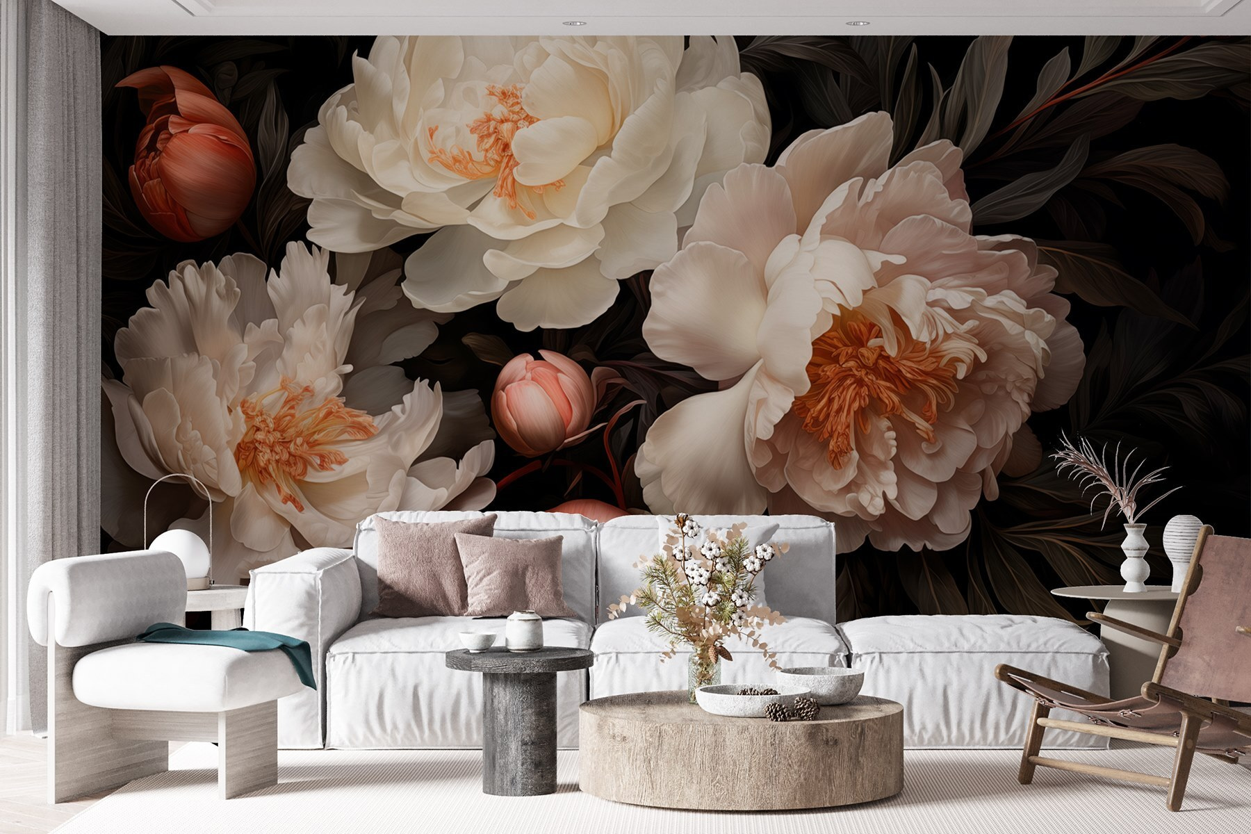 Stel je eens voor dat je een kamer binnenstapt die aanvoelt als een geheime tuin, waar de schoonheid van pioenrozen alles tot leven brengt. Deze muurschildering met een prachtige groep witte bloemen verandert elke ruimte in een rustig toevluchtsoord. Stel je voor dat je ‘s ochtends aan je koffie nipt, omringd door zachte bloemblaadjes die sereniteit uitstralen. De rijke contrasten van de bloemen tegen het donkere gebladerte creëren een knusse omhelzing, perfect voor luie middagen. Over een gespreksonderwerp gesproken! Het is alsof je een stukje natuur in huis haalt, zonder de gieter. Voeg een vleugje charme toe en laat elke blik opbloeien tot vreugde.