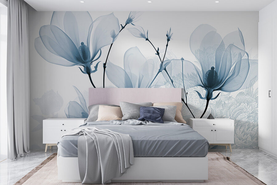 Verander een saaie muur in een dromerige ontsnapping met deze prachtige muurschildering met delicate bloemen in zachte tinten. Stel je eens voor dat je een kamer binnenloopt die aanvoelt als een zachte tuin, waar het flauwste briesje geheimen lijkt te fluisteren. Het is alsof je een stukje natuur in huis haalt, zonder de bijen en het niezen.