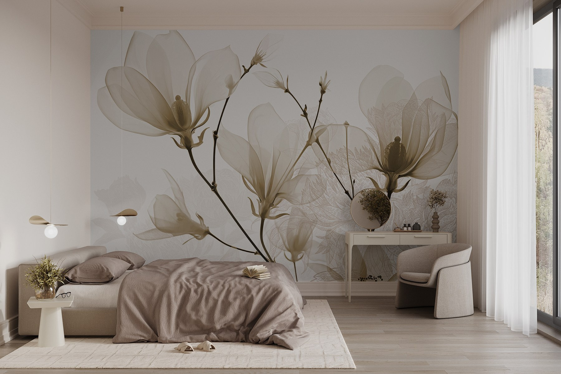 Tover elke kamer om in een rustig toevluchtsoord met deze muurschildering van delicate bloesems in zachte tinten. Stel je voor: wakker worden met zachte bloemengeuren die sereniteit uitstralen, perfect om aan je koffie te nippen of je leesvaardigheden te ontspannen. De subtiele lijnen en gedempte tinten creëren een geraffineerde sfeer zonder dat het je moeite kost. Vrienden zullen zich verbazen over hoe zo’n eenvoudige toevoeging de hele ruimte kan opfleuren. Het is bijna alsof je een tuin in huis haalt, zonder de vervelende pollen! Of het nu in een gezellig hoekje staat of als een opvallend stuk, het brengt de juiste sfeer, vind je niet?