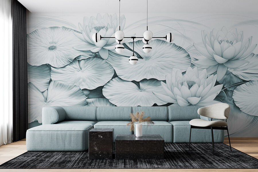 Transformeer je kamer met de serene schoonheid van deze muurschildering met een mooie groep leliebladzijden en delicate bladeren. Het is alsof je een vredige vijver in je kamer hebt – perfect om bij weg te dromen of gewoon te genieten van een rustig moment. Stel je voor dat je wegzakt in je favoriete stoel met een warm kopje thee in de hand, terwijl de zachte groene en witte kleuren je omringen als een zachte knuffel. Deze muurschildering is ideaal om gesprekken op gang te brengen, of het nu over de natuur gaat of over je laatste boekobsessie. Het is gemakkelijk en toch boeiend, net als een luie middag aan het water.