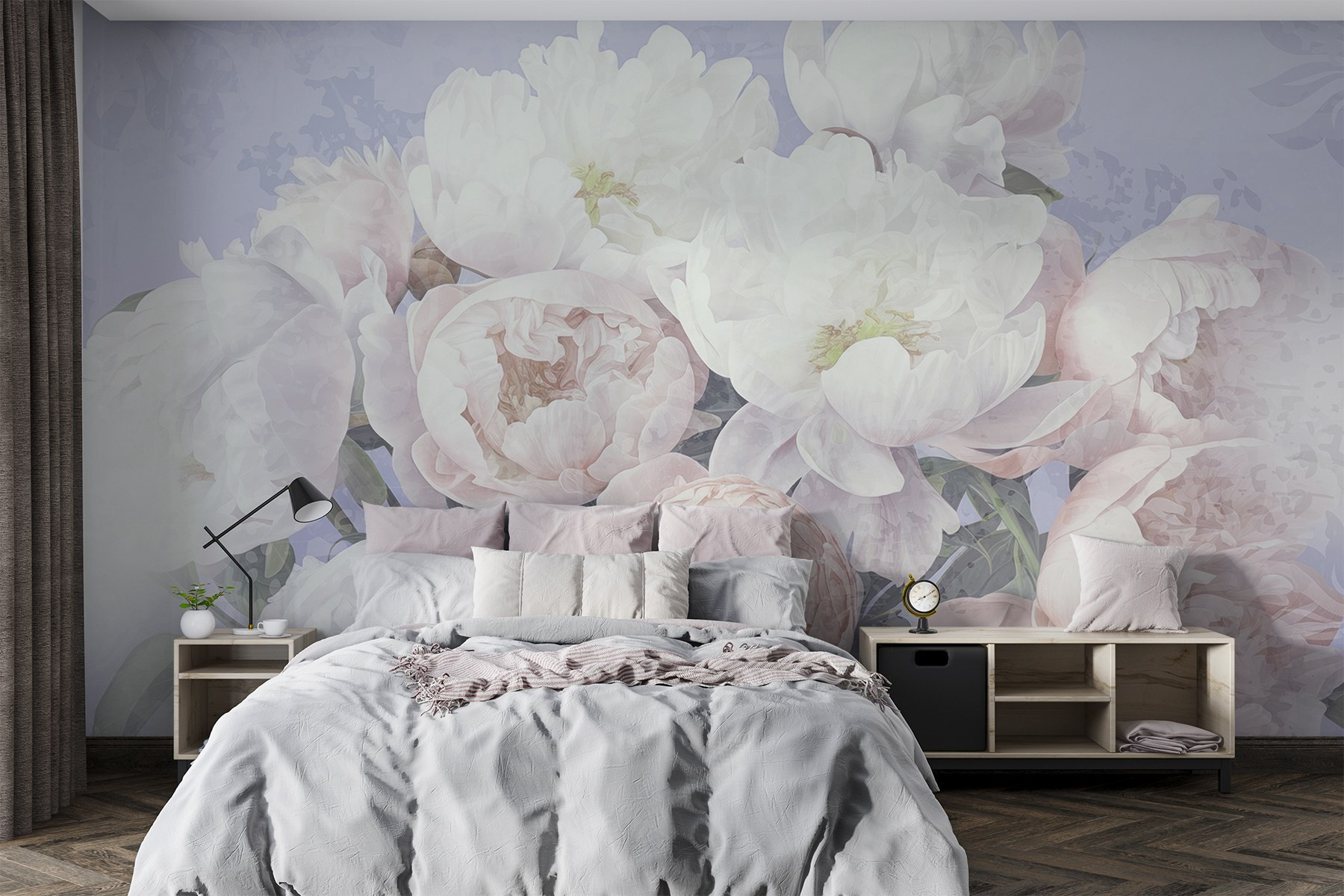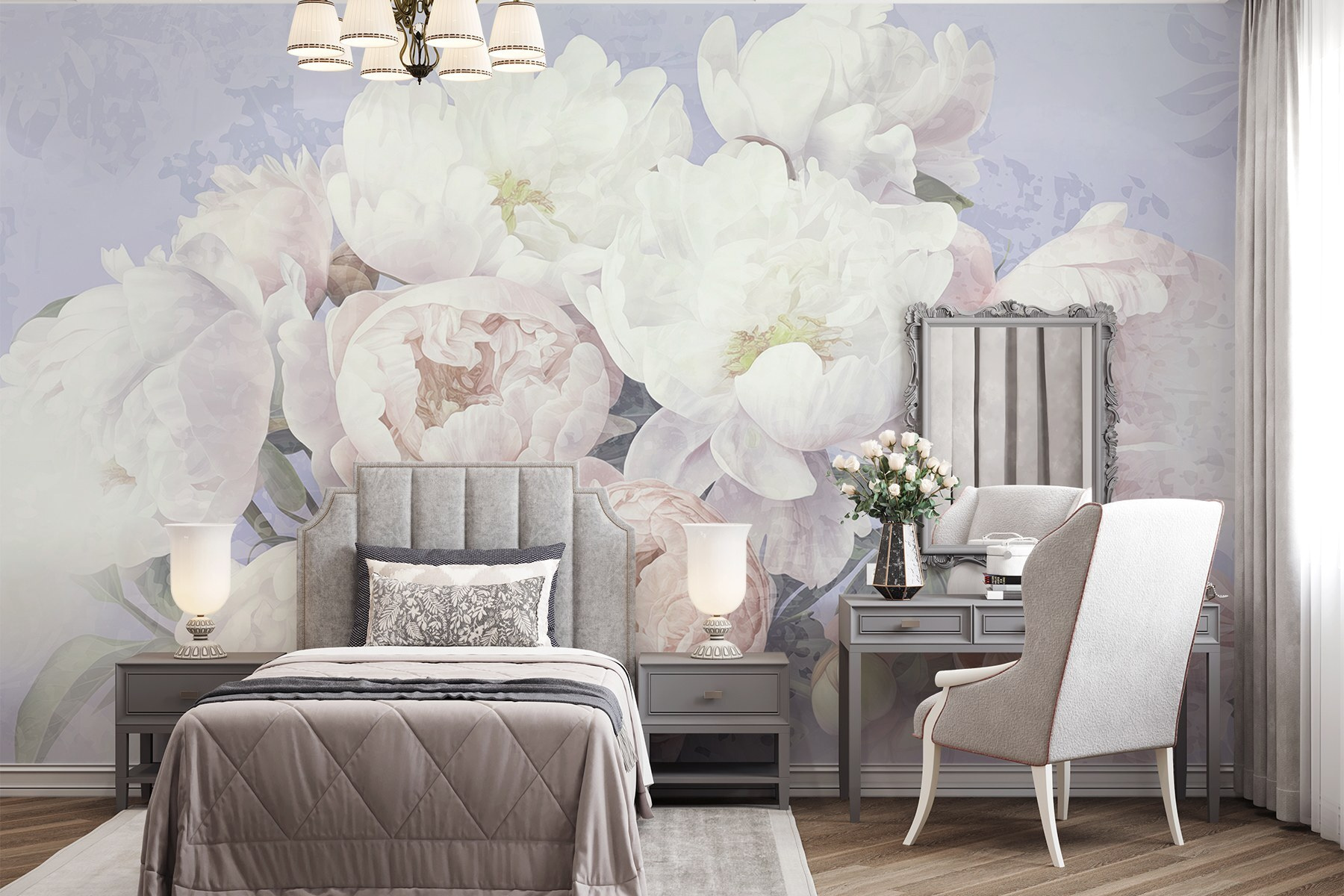 Fleur elke ruimte op met deze prachtige muurschildering met een prachtig boeket van zacht witte en roze bloemen. Stel je voor dat je een kamer binnenloopt waar deze pioenrozen tot leven komen en de lucht vullen met hun charme – oké, misschien niet de echte geur, maar het komt in de buurt! Stel je voor dat je ‘s ochtends aan je koffie nipt terwijl je naar deze bloemen staart en je een vleugje rust over je heen voelt komen. Deze muurschildering is perfect voor een gezellig hoekje of zelfs een levendige woonkamer en zal je zeker doen glimlachen en complimentjes geven. Het is alsof je een geheime tuin aan je muur hebt, zonder het water geven en de vervelende beestjes! Wie zou dat niet willen?