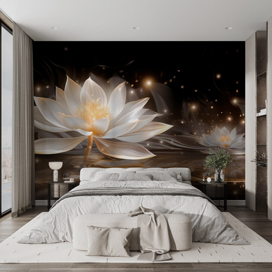 Transformeer elke kamer met deze betoverende muurschildering met een serene witte bloem die sierlijk in het water drijft. Het brengt een sfeer van rust, perfect om bij weg te dromen of gewoon om binnenshuis de schoonheid van de natuur op te snuiven. Stel je voor dat je je kamer binnenstapt en begroet wordt door dit vredige tafereel – het is net een minivakantie telkens als je langsloopt. Die tere bloemblaadjes en zachte omgeving fleuren je muren moeiteloos op, waardoor zelfs de saaiste dagen een beetje magischer aanvoelen. Het is niet alleen decor; het is een vibe! Of het nu in een gezellig hoekje is of in het middelpunt van je woonkamer, deze muurschildering zal zeker harten doen trillen en misschien zelfs een beetje vreugde opwekken tussen de drukke momenten door. Geef je muren een frisse wind!