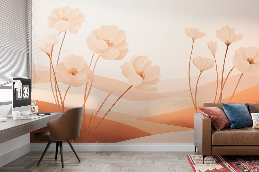 Een saaie muur omtoveren tot een oase in de woestijn is wat deze “Fotobehang White Flowers in a Desert” het beste doet. Stel je voor dat je een sereen landschap binnenstapt waar romige bloesems zachtjes dansen tegen zachte, vloeiende duinen. Het is als de rust na een regenbui, die je ruimte tot leven brengt. Deze muurschildering is perfect voor een gezellig hoekje of zelfs een levendige eethoek en brengt warmte zonder overweldigend te zijn. Stel je voor dat je thee drinkt terwijl je wegdroomt, verloren in de rustige sfeer. Het is een subtiel statement dat stijl en sereniteit uitstraalt, perfect voor iedereen die hunkert naar een vleugje natuur binnenshuis.