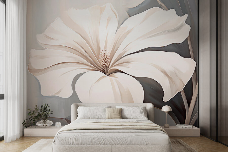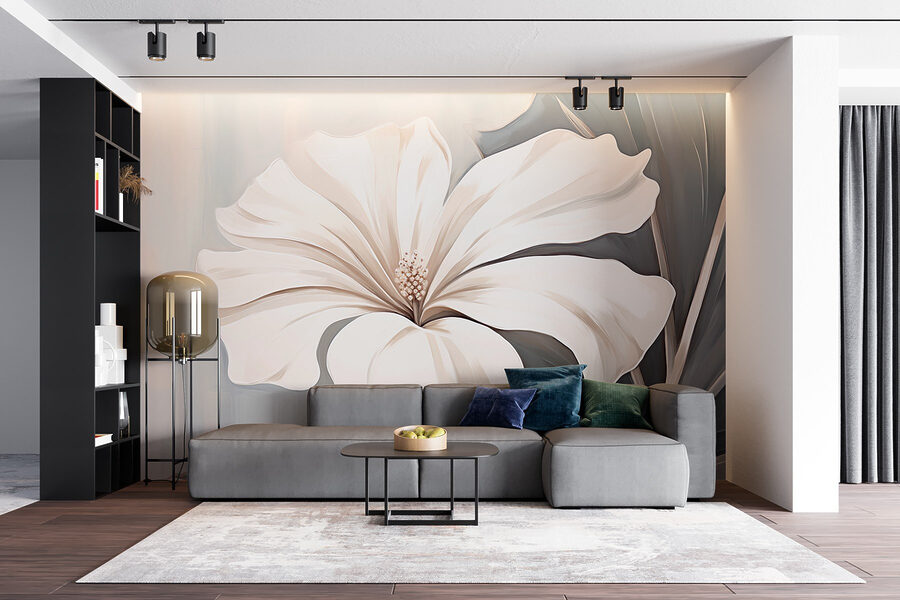 Transformeer elke ruimte met deze prachtige muurschildering met een prachtige witte bloem tegen een rustgevende grijze achtergrond. Het is als een frisse wind voor je muren en nodigt uit tot rust in je huis. Stel je voor dat je in je favoriete hoekje zit, met een warm drankje in je hand en deze muurschildering voegt een vleugje elegantie uit de natuur toe. Perfect voor een gezellige woonkamer of een serene slaapkamer, het maakt een rustig statement zonder om aandacht te schreeuwen. Het gaat allemaal om die moeiteloze charme, waardoor gasten zich meteen op hun gemak voelen. En laten we eerlijk zijn, wie wil er nou geen bloem die nooit verwelkt? Bovendien is het een geweldige gespreksstarter – wacht maar tot de complimenten binnenstromen!