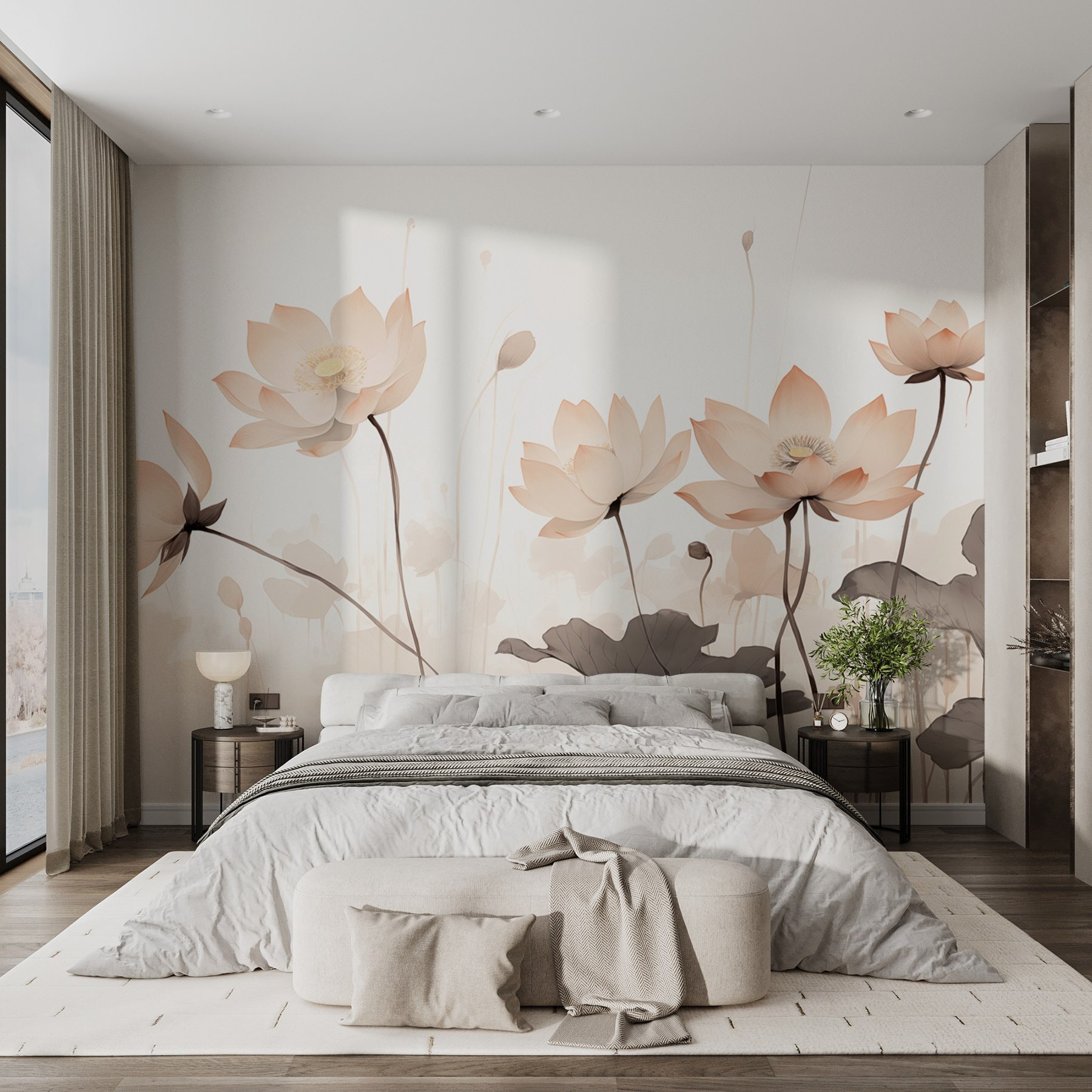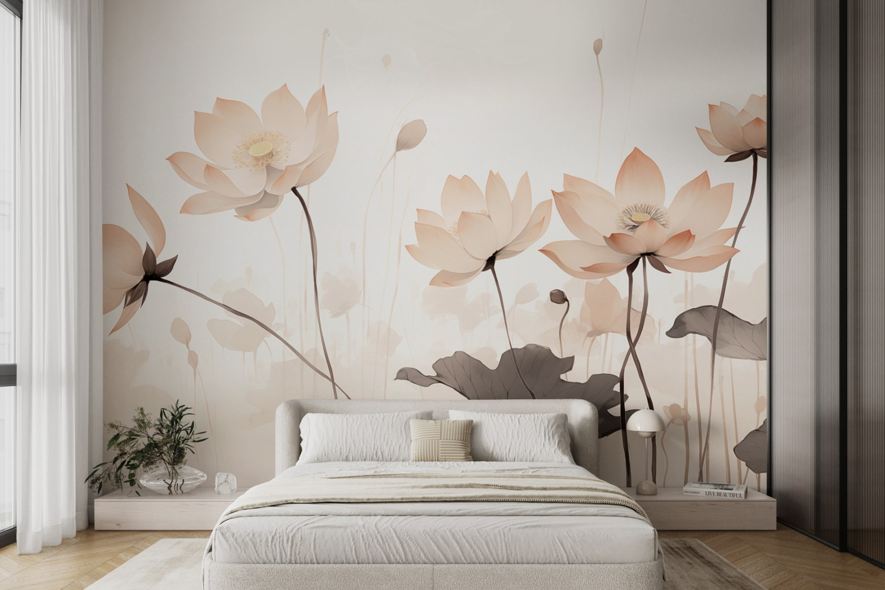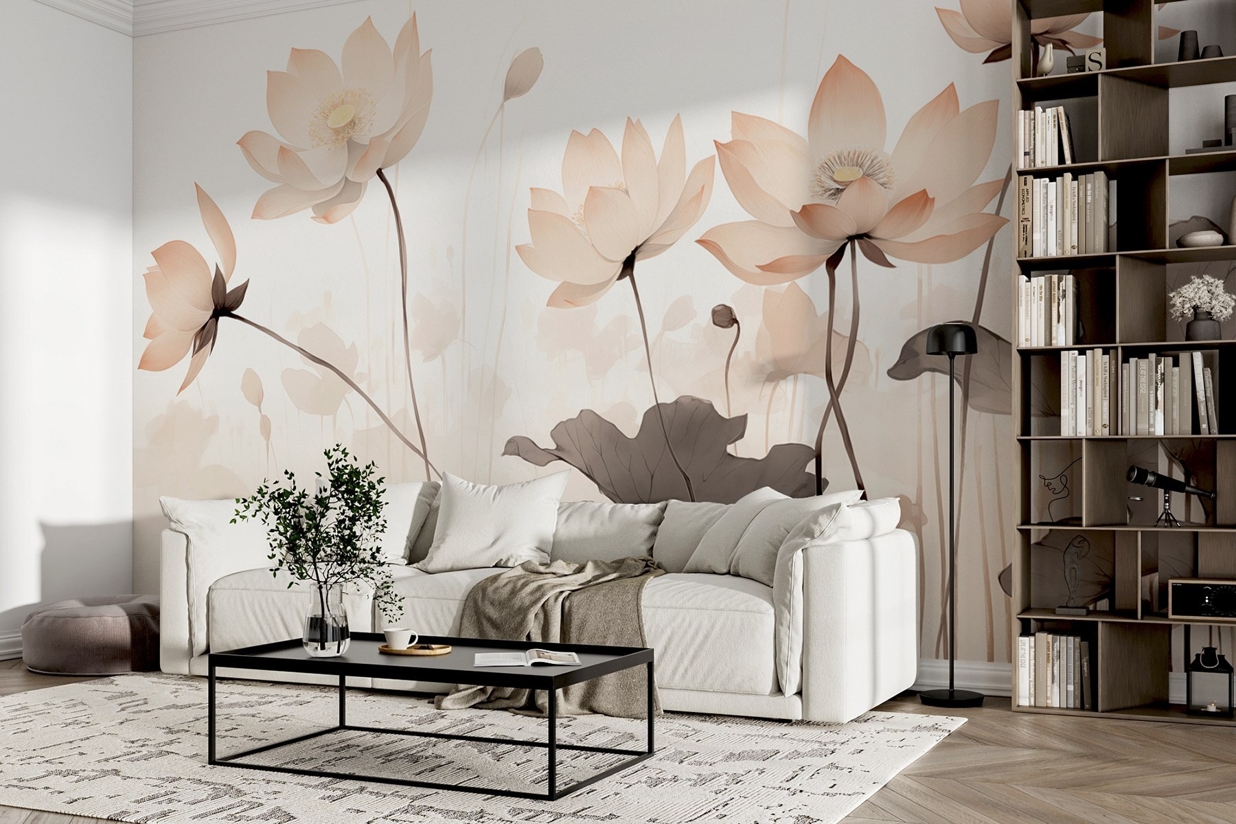 Transformeer je ruimte met deze betoverende muurschildering die aanvoelt als een zachte omhelzing van de natuur. Stel je zachte bloemen voor tegen een serene achtergrond, die zoete woordjes fluisteren naar iedereen die langsloopt. Elke bloem vertelt een verhaal – misschien is het een herinnering aan luie zomermiddagen in de tuin, of een herinnering aan zonlicht dat door lommerrijke bomen schijnt. Met zijn lichte tinten en sierlijke ontwerp fleurt deze muurschildering moeiteloos een kamer op, waardoor die opener en levendiger aanvoelt. Perfect voor een gezellig leeshoekje of een rustige slaapkamer, misschien inspireert het wel tot een dagdroom of twee. Stap in een wereld die fris en levendig aanvoelt zonder dat je ooit een tuin hoeft te onderhouden. Wie wist dat bloemen dat konden?