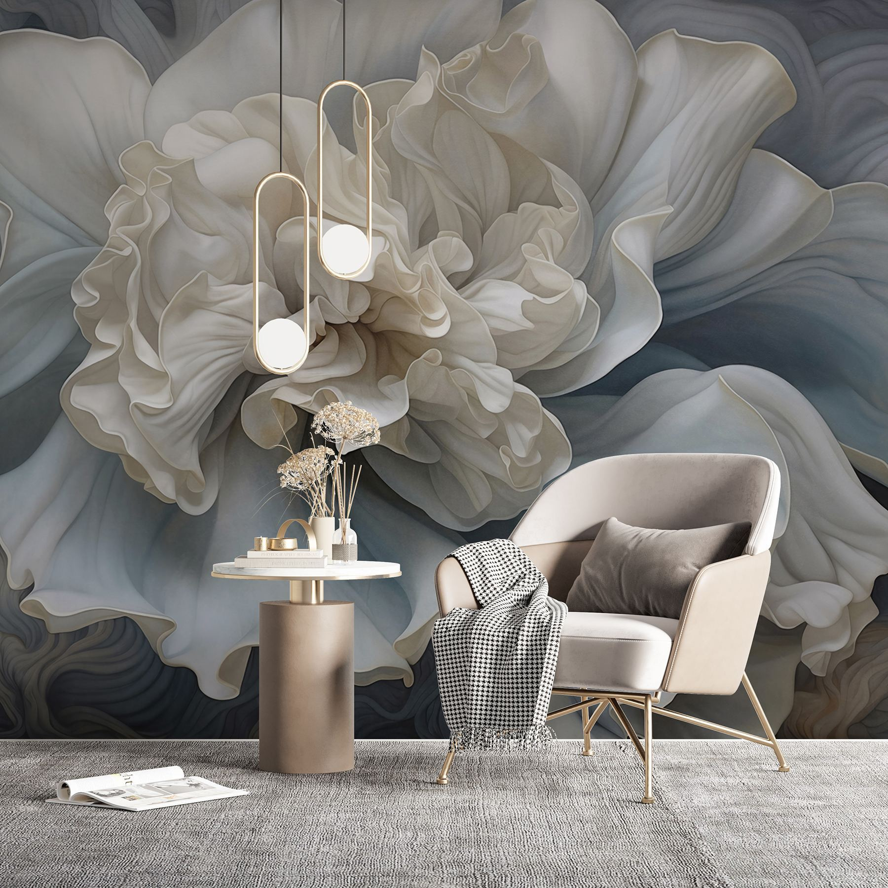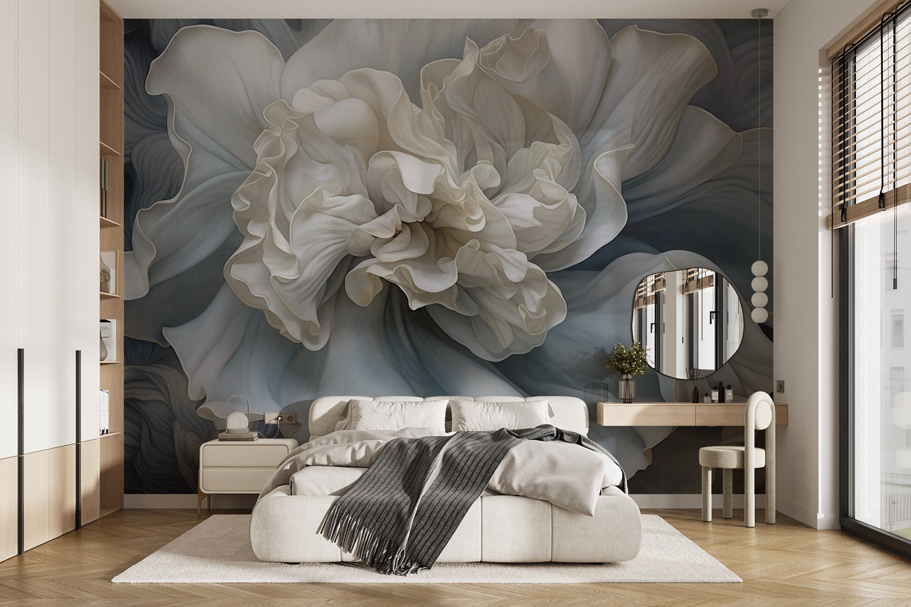 Verander die effen muur in een bloemenwonderland met de “Fotobehang White Flower with Ruffles”. Stel je voor dat je de ruimte binnenloopt en begroet wordt door deze prachtige bloem die iedereen doet glimlachen. De delicate bloemblaadjes en vloeiende ruches nodigen uit tot een gevoel van rust, perfect voor een gezellige hoek of een stijlvolle woonkamer. Het is alsof je een tuin naar binnen haalt zonder dat je je zorgen hoeft te maken over water geven of onkruid wieden. Stel je voor dat je thee drinkt terwijl je naar dit meesterwerk staart en misschien zelfs even de was vergeet. Dat is de kracht van een mooie inrichting!